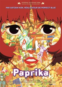 Étaient présent dans la salle : Maiko et Tetsuya, la clique des habitués du café-jap, et pas mal d’autres personnes. Avant la séance, l’organisateur du Japan Event nous a fait une présentation du salon. Puis Maiko nous a parlé du salon, du film et du réalisateur Satoshi Kon, décédé récemment. Ce qui est rigolo, c’est qu’avant la séance, B. m’a demandé si je savais de quoi parlait le film (il ne l’avait jamais vu, et moi non plus) et je lui ai dit qu’après lecture du pitch, j’avais trouvé que ça ressemblait à Inception. Et Maiko nous a révélé que Christopher Nolan s’était inspiré de Paprika pour son propre film. Donc un peu peur, car Inception ne m’a pas marquée très favorablement, hormis pour la réalisation technique. Donc le film. Je me suis endormie. Enfin assoupie, plutôt, pendant quelques minutes. La faute à la VOST. Désolée pour les puristes mais je n’aime pas regarder un film en VO lorsque je ne comprends pas la langue. Et en effet, il y a un peu de Inception là-dedans. Un laboratoire a mis au point un casque, le DC mini, qui permet d’entrer dans les rêves des gens, et de les reproduire en vidéo. Ce casque est volé et il faut le retrouver, compte tenu de la dangerosité du procédé. Et là le film embarque le spectateur dans une sorte de cauchemar éveillé. On ne sait plus ce qui relève de la réalité ou du rêve. La première scène du film est totalement surréaliste, très belle, mais en même temps elle a quelque chose de réaliste car j’ai trouvé que le principe des rêves était très bien reproduit. Cette façon de changer de lieu d’une seconde à l’autre, le sol qui se dérobe, la chute dans le vide…Et ce genre de scène se reproduit tout le long du film. La course pour récupérer le DC mini et trouver le coupable s’effectue dans deux univers parallèles. Je crois que je me suis assoupie lorsque le coupable a été révélé. Du coup je ne suis pas sûre d’avoir tout compris. B., qui n’a pas dormi, n’a rien compris non plus. Reste que les images sont très belles. Angoissantes aussi. Pour ce qui est du message à retenir…ma foi c’est assez vague. Nos rêves sont évidemment la réalisation de nos fantasmes. Certains nous semblent mystérieux et il est difficile d’en trouver la clé.