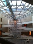 1. @Val : les photos étaient interdites ? oups…En toute sincérité je n’ai pas vu les panneaux d’interdiction. J’ai vu « ne pas fumer », « ne pas toucher les oeuvres » mais rien sur les photos (et je jure que j’ai fait attention). Bon ben tant pis (je les retirerai s’il le faut, même si je pense que ça ne porte pas atteinte à l’expo, au contraire). Le sable blanc, qq’un avait dessiné un coeur avec son gros doigt et il y avait aussi des traces de pas. Pour l’oeuvre à l’entrée de cette même salle, constituée de 2 plans inclinés, j’ai heureusement précisé à Bastien que ça faisait partie de l’expo sinon il allait, selon ses propres termes « faire le con ». Le chien sur la chaise, oui, ça nous a surpris aussi. Le type tout seul était dans une salle dans laquelle on ne pouvait pas entrer, mais dépourvue de toute autre oeuvre. J’ai aussi cru que c’était Pascal mais apparemment non. Enfin j’en sais rien. J’ai gratté samedi soir sur Gougueule images pour vérifier (pour ce que ça vaut, bien entendu) et j’avais trouvé un autre nom dont je ne me souviens évidemment pas. Mais des photos existent de face donc je pense que ce n’est pas une nouveauté.
