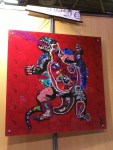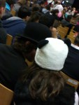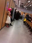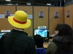 J’étais plutôt satisfaite de voir que l’espace des stands avait été organisé dans la grande salle du rez-de-chaussée. Les fois précédentes, j’avais trouvé l’agencement à l’étage très inconfortable et il était très difficile de circuler. Sauf que voilà, cette année, nouveaux organisateurs, nouveaux objectifs commerciaux sûrement…et au final c’était la foire au grand n’importe quoi. Je ne parle pas bien sûr des jeunes déguisés en leur personnage préféré, qui faisaient la chenille ou s’amusaient dans les travées. Je ne parle pas non plus des combats de faux sumos ou du concert atroce de J-pop. Tout ceci a bien évidemment sa place dans une manifestation comme celle-là. Ce qui nous a déçus, Bastien et moi, c’est la multiplication des stands de conneries diverses et variées, la rareté des stands de produits de qualité, pour collectionneurs, la présence de stands de bouffe peu engageants…Et surtout, surtout, le peu de considération et de place accordées aux activités culturelles. On a assisté à une mini-conférence sur Tezuka (mangaka, créateur d’Astro boy notamment). C’était très intéressant et l’intervenant était agréable à suivre…sauf que sa voix, malgré le micro, était en partie couverte par la musique tonitruante qui surgissait du concert de J-pop derrière lui. Très fatiguant pour les auditeurs. Ensuite, on a trouvé le « coin » réservé à JANA et on est tombés sur une Maïko consternée. Dans cet espace, plutôt bien agencé, personne. Tetsuya avait été obligé de délocaliser ses animations furoshiki et origami dans l’espace restauration, pour échapper au bruit insupportable environnant (concert, micro des conférences, public…). Très peinée de voir Maïko si déçue. Et pour arriver à déceler au premier coup d’œil une émotion négative sur le visage d’un Japonais…c’est que ça doit être sérieux…On a rebondi et parlé de la sortie prévue aux Ambiances jeudi prochain, avec la soirée consacrée au film de sumo. Tout le monde se sentira plus à l’aise dans ce contexte.