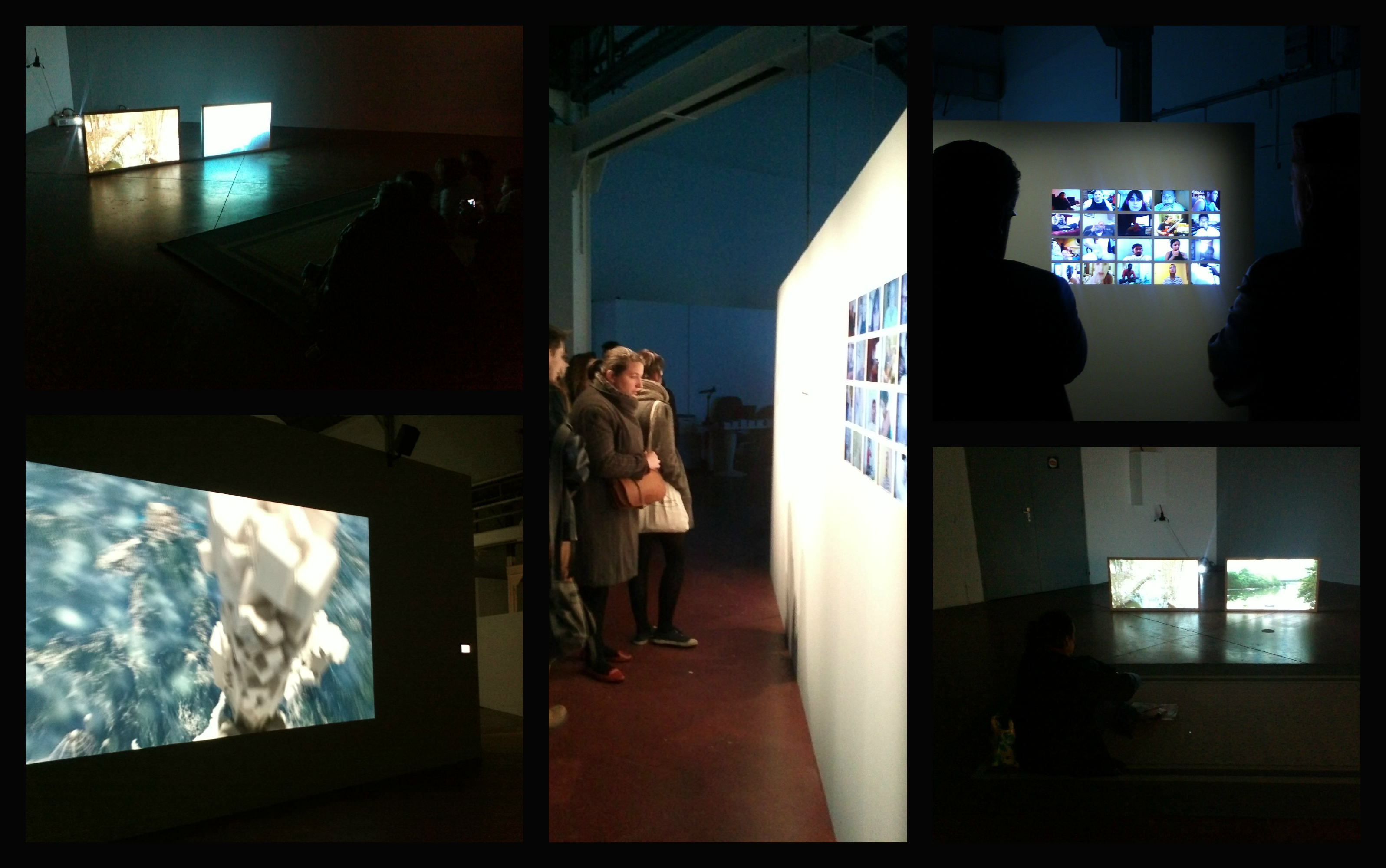 Surprise par l’agencement du lieu. Je sais qu’il est modulable à l’infini, ce hangar, mais j’étais presque perdue, positivement et agréablement perdue. Surprise aussi par la foule présente, débarquée en grande partie d’un bus semble-t-il affrété pour le parcours vernissage commencé en centre-ville et qui s’achevait au MARQ à 20h. Donc pas de discours, pas de petits fours, pas de coup à boire, juste les œuvres et rien que les œuvres. Installations surprenantes, projets concrets ou plus nébuleux…j’ai particulièrement apprécié le travail de Nicolas Clauss, avec ses multiples écrans affichant des visages de jeunes, tantôt sombres voire inquiétants, tantôt rieurs. J’ai aussi été fascinée par le projet de Gabriel Mascaro. Ces gens occupés à ne rien faire, ou faire ce que bon leur semble, à qui on a demandé de prouver qu’il profitait de leur temps libre…Manipulation, voyeurisme, vacuité, difficile de démêler les sensations lorsqu’on regarde cette mosaïque d’anonymes.