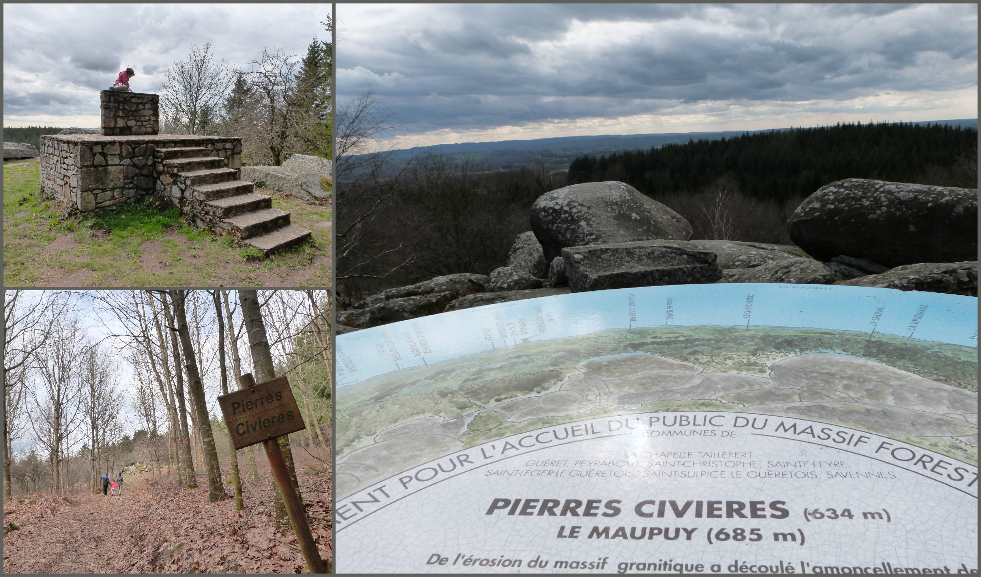 Petite balade au sommet du Maupuy pour escalader les pierres Civières en famille. Malgré le temps couvert, le puy de Dôme était bien visible à l’horizon.