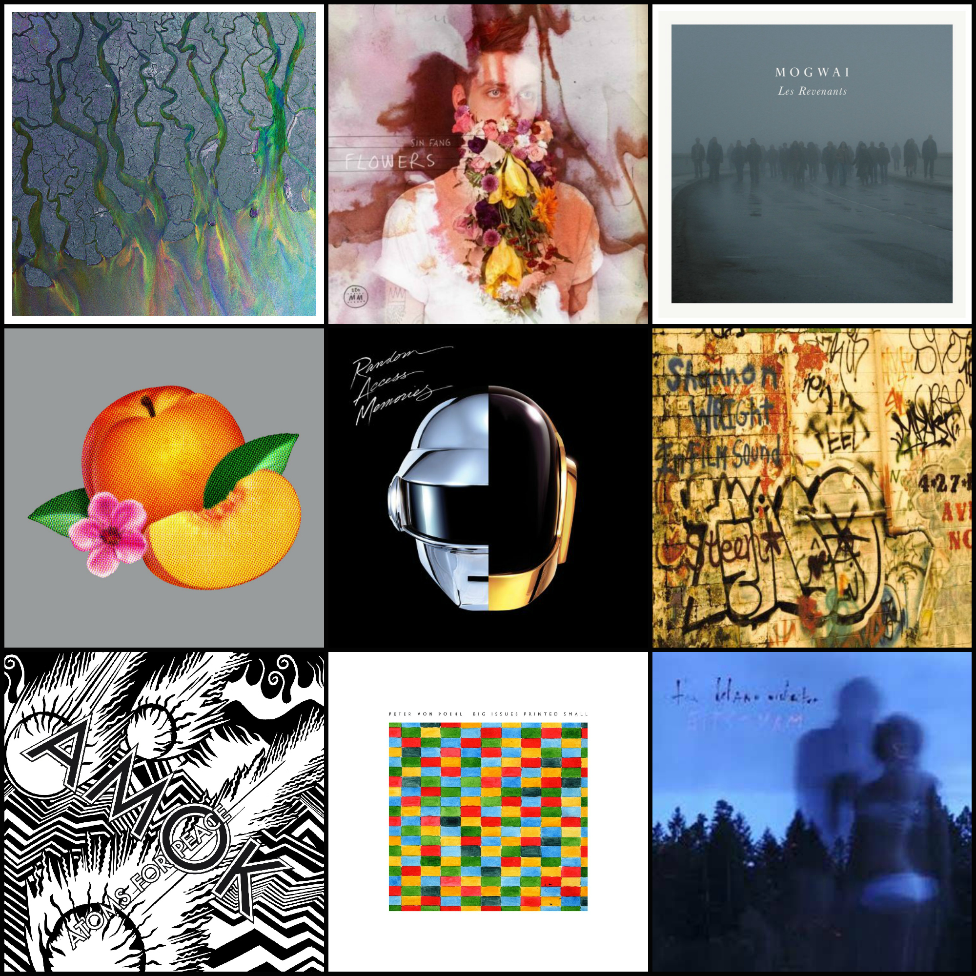 Achetés dernièrement : le dernier Sin Fang, très bon, le dernier Archive, très…euh…Archivesque, le dernier Delano Orchestra, auquel je n’accroche pas, le Atoms for Peace, side-project de Thom York en marge de Radiohead, très bon et hypnotique. Et sinon, je me suis procuré avec beaucoup de retard l’album de Alt-J, qui est une révélation comme ça faisait longtemps que ça m’était pas arrivé. J’étais passée à côté l’année dernière mais bon…on peut pas être au four et au moulin.