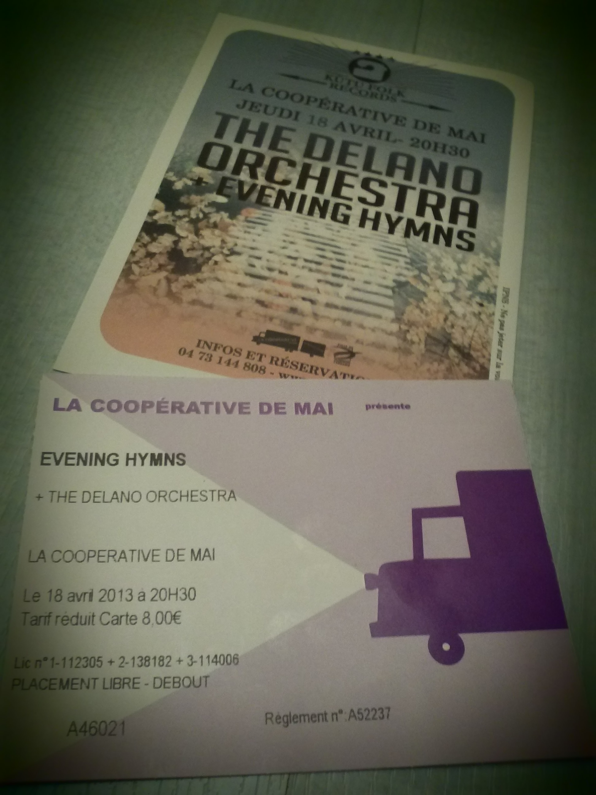 Voilà une soirée dont j’étais certaine qu’elle ne me décevrait pas (par rapport aux doutes ressentis avant le concert de Shannon Wright). J’ai déjà vu maintes fois The Delano Orchestra sur scène et même si je n’avais jamais vu Evening Hymns, il était évident que ça ne pourrait que me plaire.