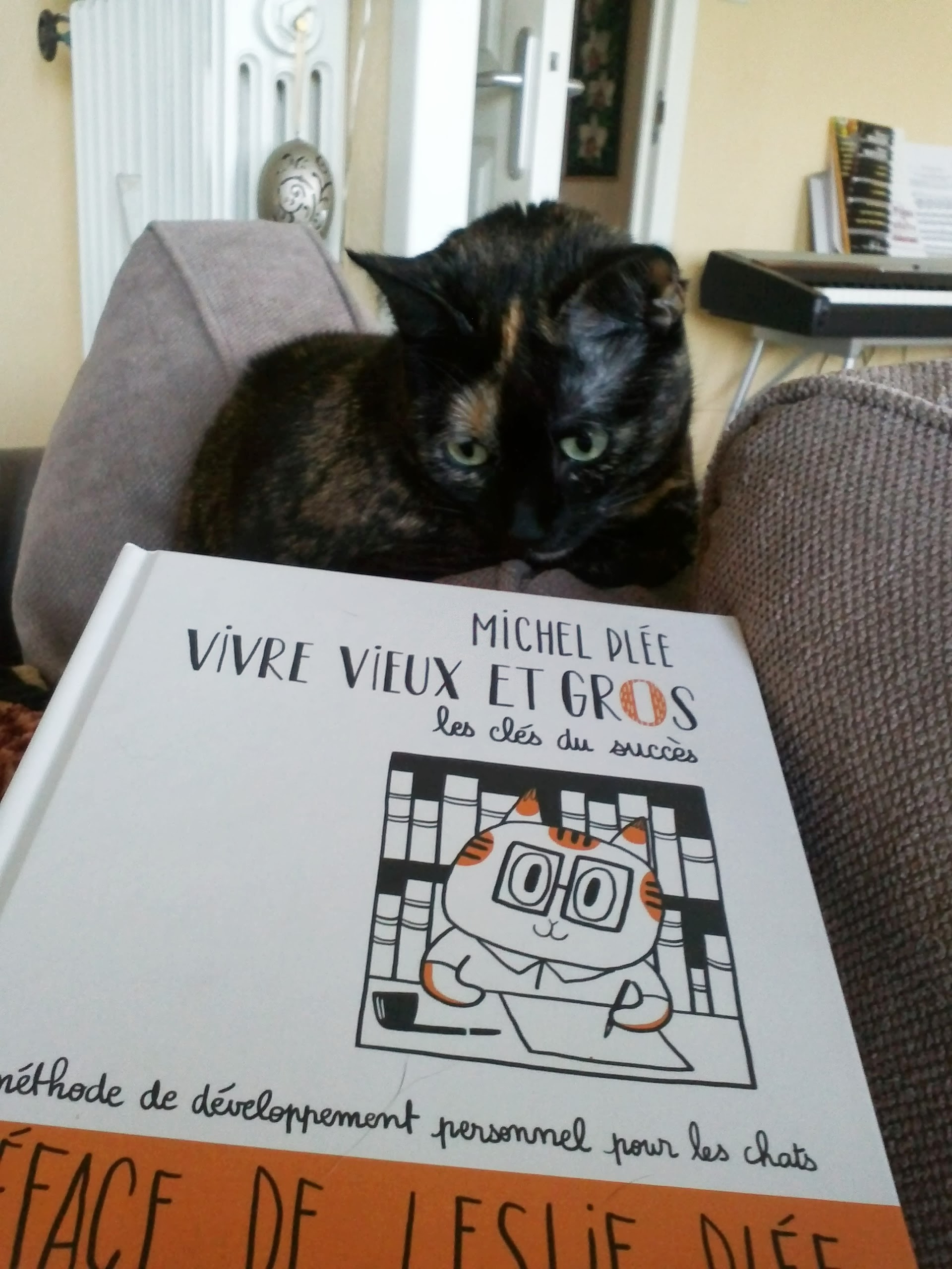 Je m’amuse de voir que sur Amazon, Michel Plée est référencé comme étant l’auteur du livre. Il suffit de l’ouvrir à n’importe quelle page pour voir que Michel, c’est le chat. La couverture est donc un clin d’œil aux bouquins de développement personnel et la véritable auteure, Leslie Plée.