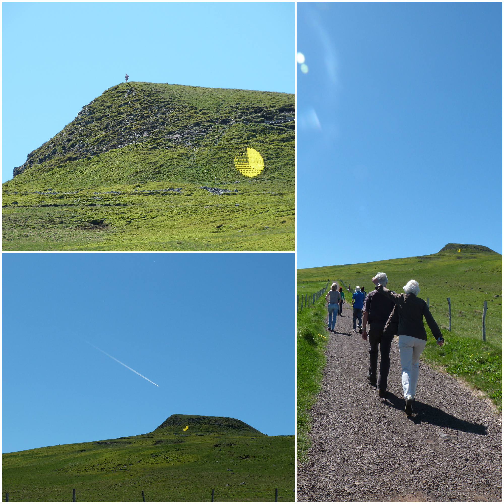 Direction Le Mont-Dore et la Banne d’Ordanche, célèbre protubérance du secteur, pour y découvrir « Flash loading » de Marie Lelouche. D’en bas, on distingue à peine l’œuvre. Il faut crapahuter jusqu’en haut de la Banne d’Ordanche pour en apprécier toutes les subtilités et malheureusement le temps nous manquait. Et c’est je pense la balade la plus longue de toutes les œuvres exposées. Symbole du temps qui passe et de l’attente, « Flash loading » aura paradoxalement été la seule œuvre à ne pas être approchée par les visiteurs du jour, trop pressés de découvrir la suivante…
