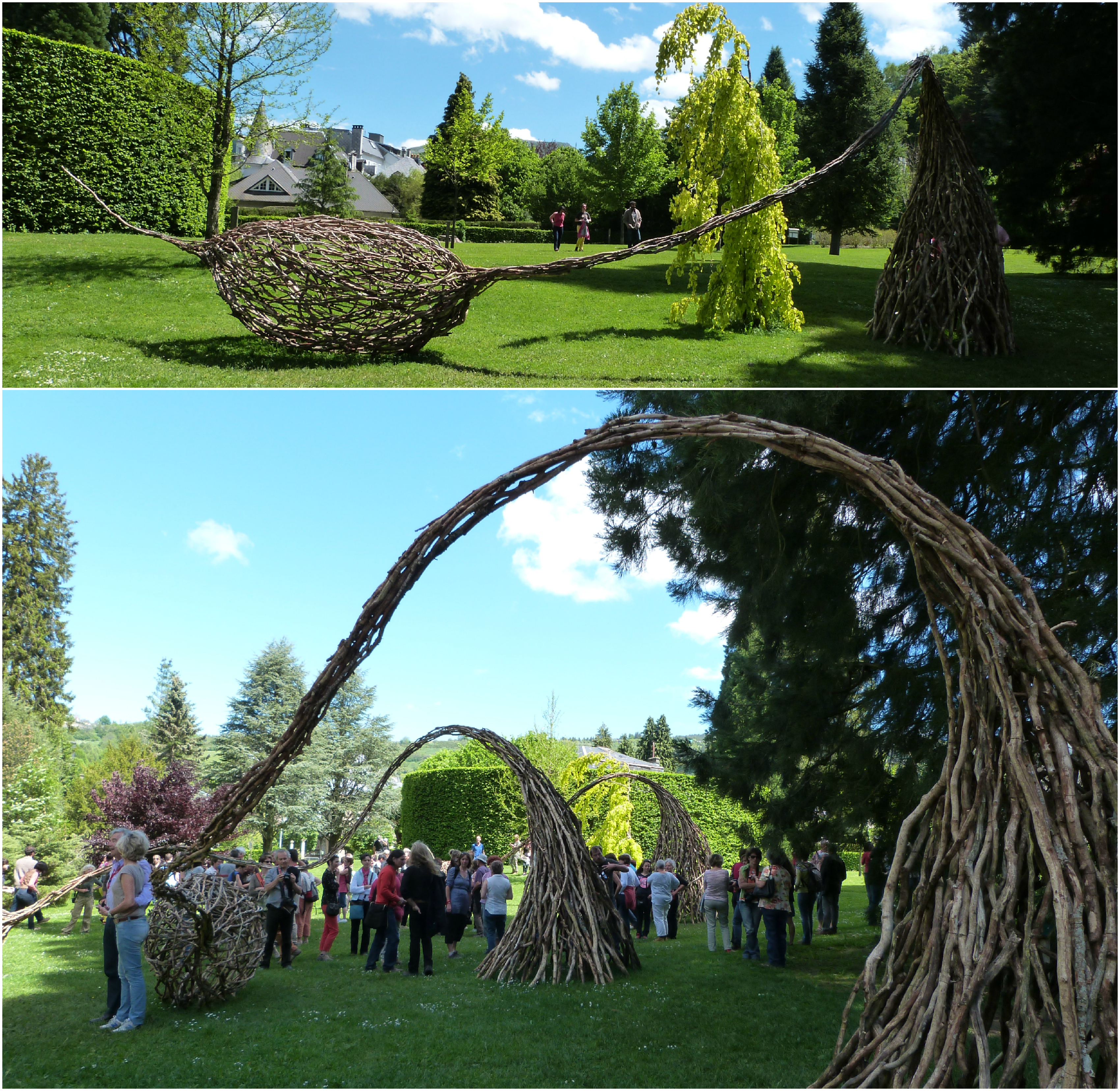 La suivante étant située au cœur de la station thermale de La Bourboule, dans le parc Fenestre. Délaissant les espaces vertigineux, c’est dans un jardin public que Frank Nordiek et Wolfgang Buntrock ont installé leurs plantes géantes intitulées « In the world of plants », rivalisant avec les séquoias majestueux du parc. Ces élégants et poétiques enchevêtrements de bois se fondent dans le paysage, échoués souplement sur les pelouses.