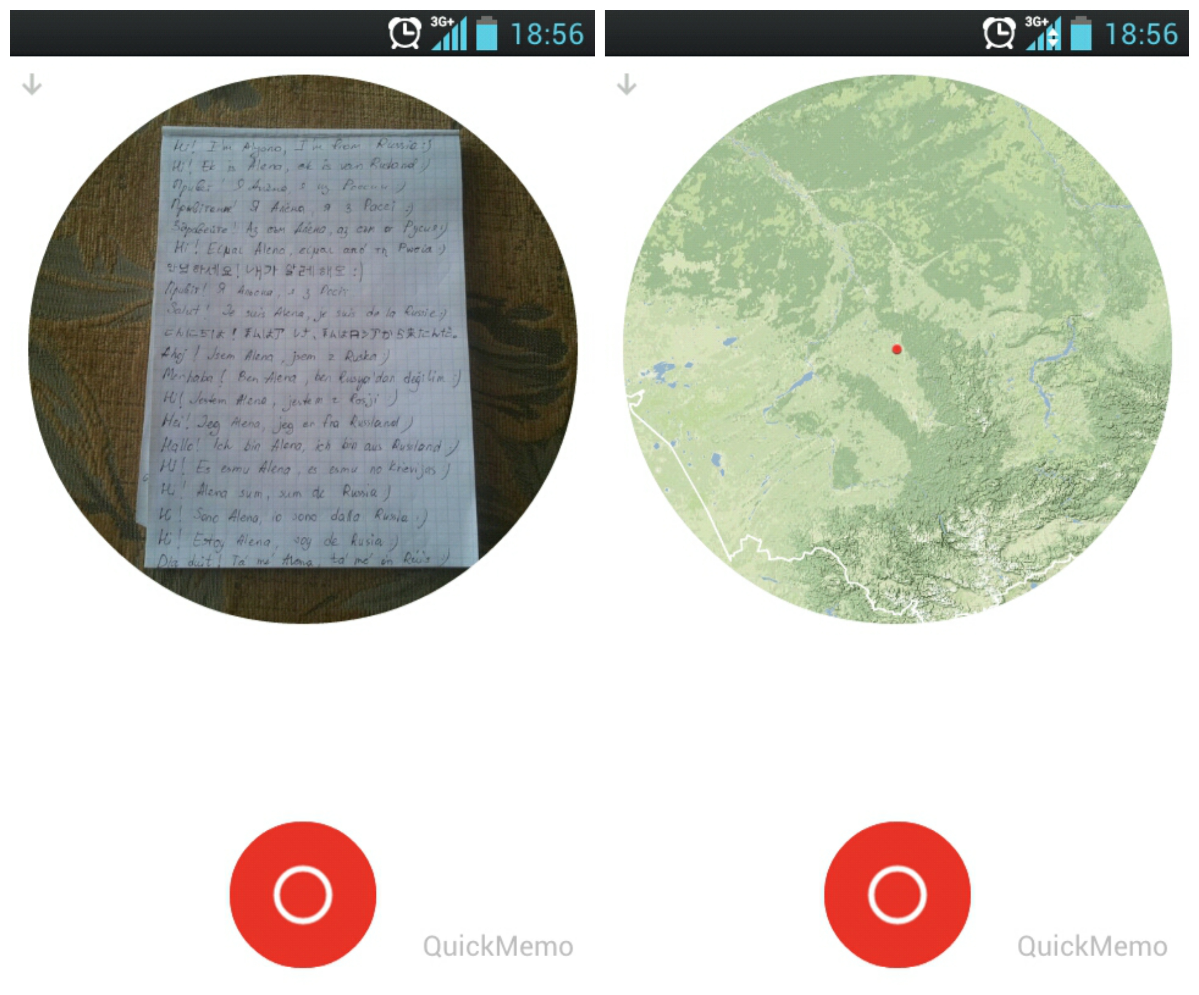 Malheureusement, ma courte expérience est un peu décevante. J’ai reçu deux « photos » de feuilles de papier contenant un petit mot. Pour la première, heureusement, car la géolocalisation ne m’a pas renseignée plus que ça vu que le zoom était trop important sur la zone concernée. Pour la deuxième, ce qui était marqué sur le papier correspondait à la géolocalisation. Ma première photo envoyée, j’ai triché. En fait l’appli ne permet pas d’envoyer une photo à partir de la galerie, juste de prendre une photo en live. J’ai donc astucieusement pris mon écran d’ordinateur en photo pour envoyer les Diatomées mégascopiques à quelqu’un à l’autre bout de la planète (tu trouves pas qu’elle déchire, au format rond ?? Je la trouve trop belle, moi). Elles ont atterri en Floride. Héhé. Ça a dû lui faire drôle, au destinataire, les montagnes enneigées du Sancy ! J’espère qu’il aura apprécié. Ma deuxième photo, je n’ai pas su où elle était arrivée, le destinataire ayant désactivé la géolocalisation. Faut être un peu con, vu le mode de fonctionnement de l’appli. [edit du 26/06/13 : l’appli a été mise à jour par les développeurs, de telle sorte que les personnes autorisant la géoloc reçoivent uniquement des photos géolocalisées aussi. Et vice-versa. Cool !]. Le risque, évidemment, c’est de recevoir des photos de parties génitales ou autres joyeusetés. Je vais retenter de temps en temps et j’espère recevoir des trucs sympas. Si je ne reçois que des photos de bouts de papier griffonnés, et bien ce sera une déception, sauf si les textes évoluent en créativité. Mais sur le principe, je trouve ça génial. Donner une photo, un instant de vie à une seule et même personne sur toute la planète, qu’on ne connaîtra jamais et en essayant de lui faire plaisir quand même, c’est quand même chouette, à l’heure où les followers et les « amis » s’achètent par brouettes entières pour une bouchée de pain.