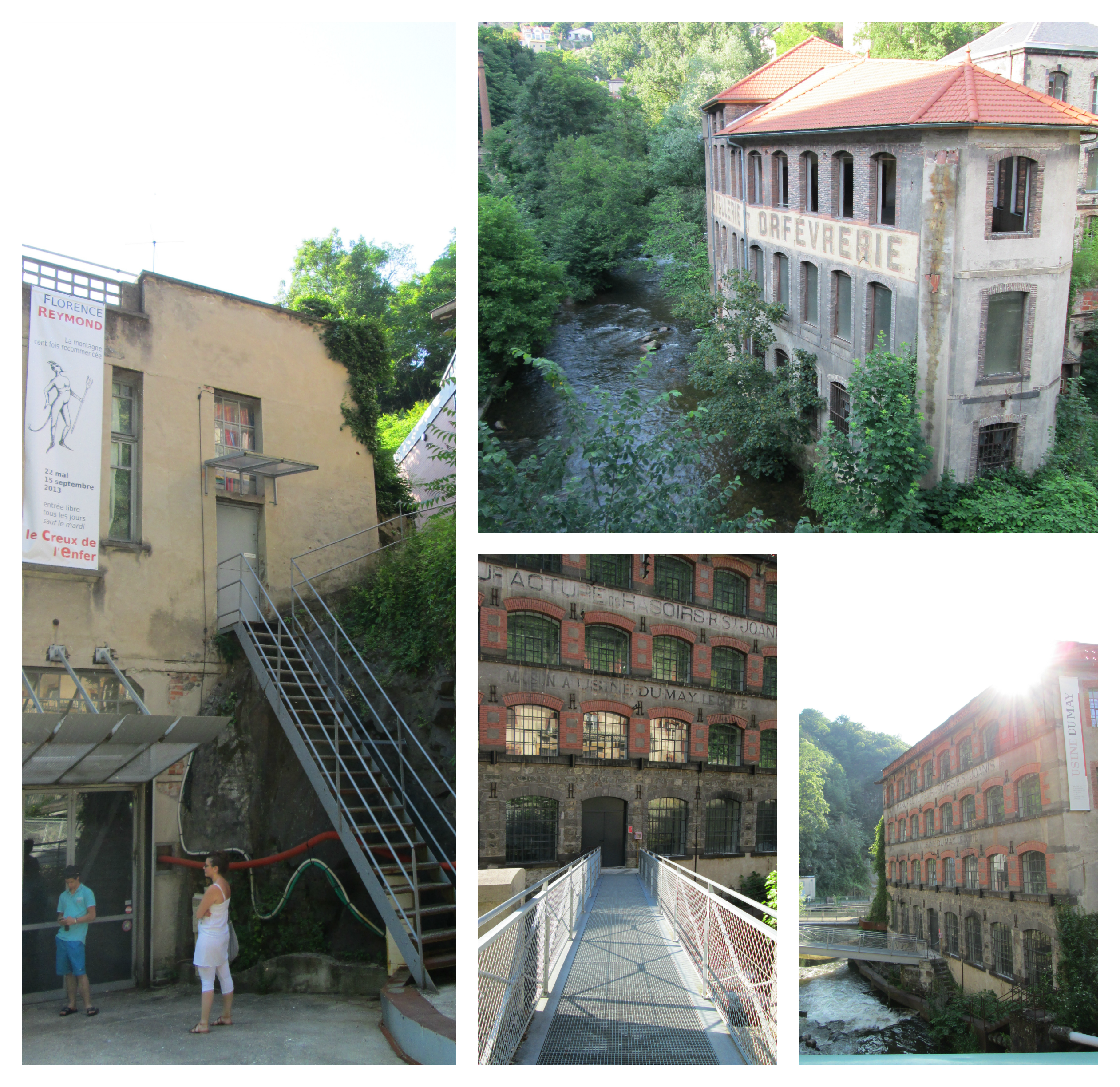 J’ai lu le texte de présentation de Frédéric Bouglé (directeur du lieu), l’historique du site et l’origine du nom. Entre saint décapité, usines qui s’enflamment de nuit, enfer de la Révolution industrielle et du travail ouvrier (Thiers, capitale du couteau et de la lame tranchante, pour ceux qui vivent dans une grotte exotique)… ça pose un concept. Après quelques années de friche industrielle, le bâtiment renaît sous la forme d’un lieu d’accueil pour les artistes. Dès 1988 m’apprend le topo.