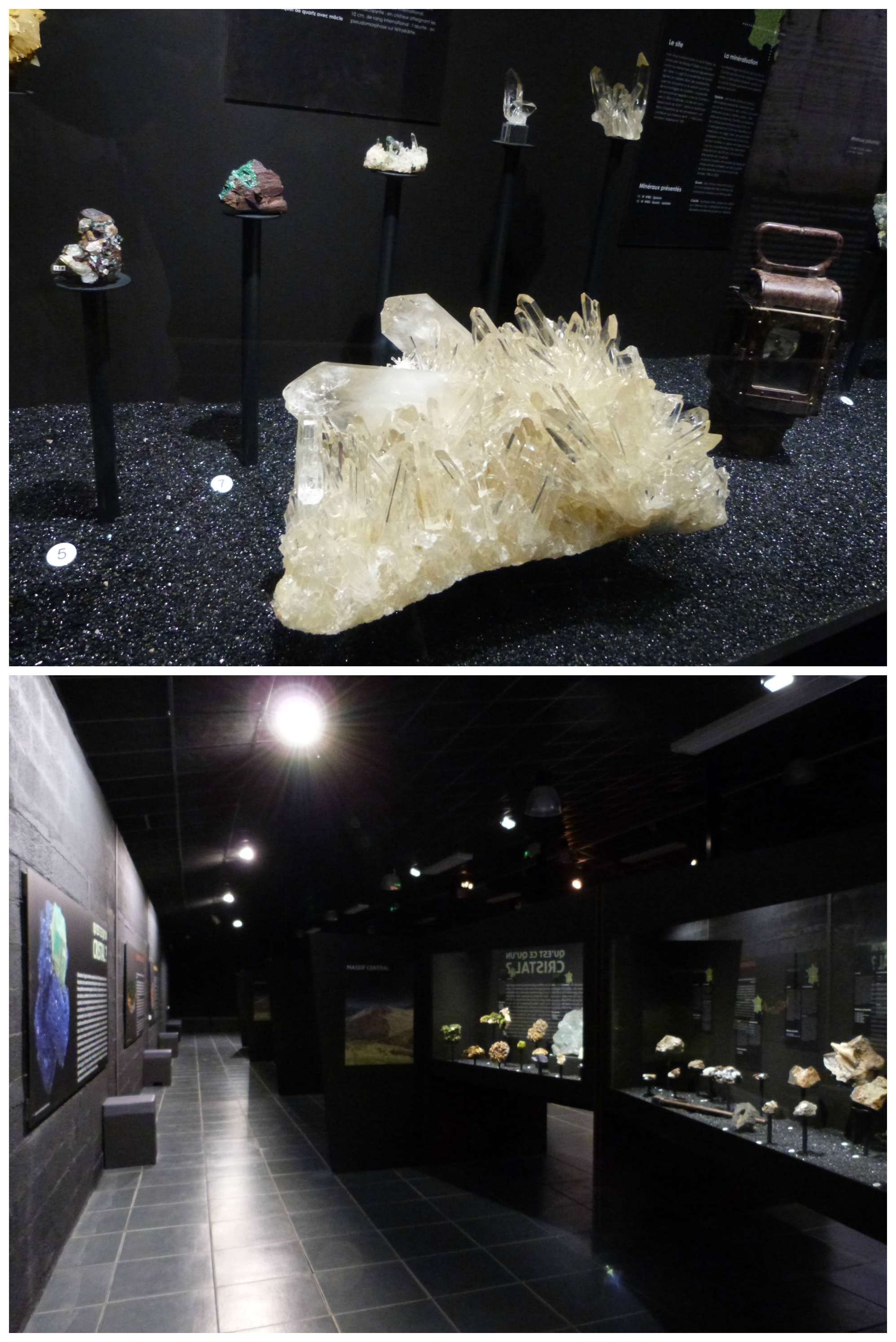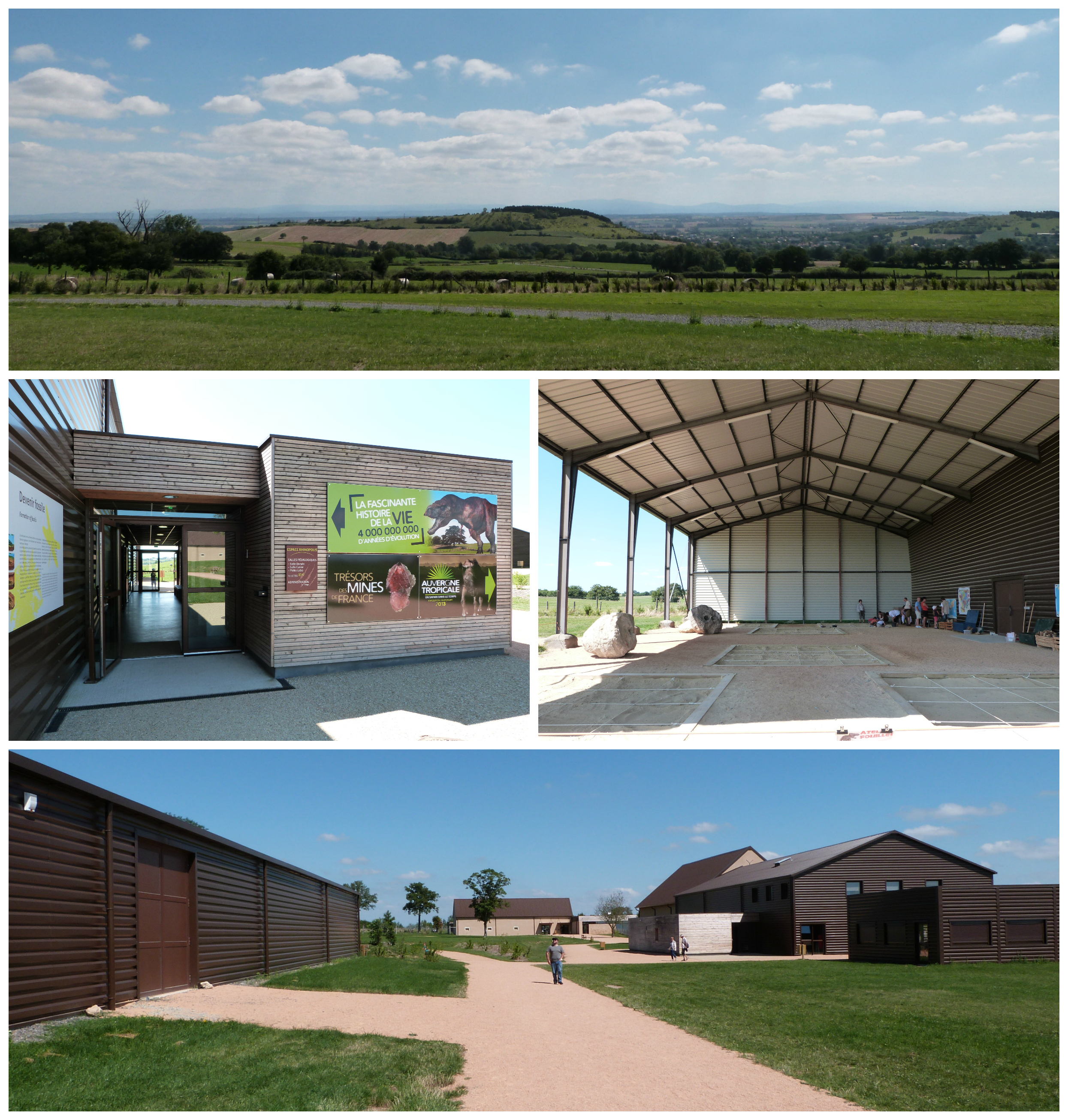 Le parcours scénographique est bien pensé mais il y a beaucoup à lire. J’avoue que, n’étant pas passionnée par le thème, je me suis contentée de trembler devant les ratiches des dinosaures. D’autre part, pour l’expo « Auvergne tropicale », l’éclairage était tellement faible que je n’arrivais même pas à lire les nombreux textes des vitrines, écrits en plus en « attaché » pour faire plus réaliste. Le site d’implantation est très agréable, avec une belle vue, mais je n’ai pas compris l’architecture choisie pour les bâtiments, qui ressemblent plus à des hangars et s’intègrent plutôt mal dans leur environnement bucolique.
