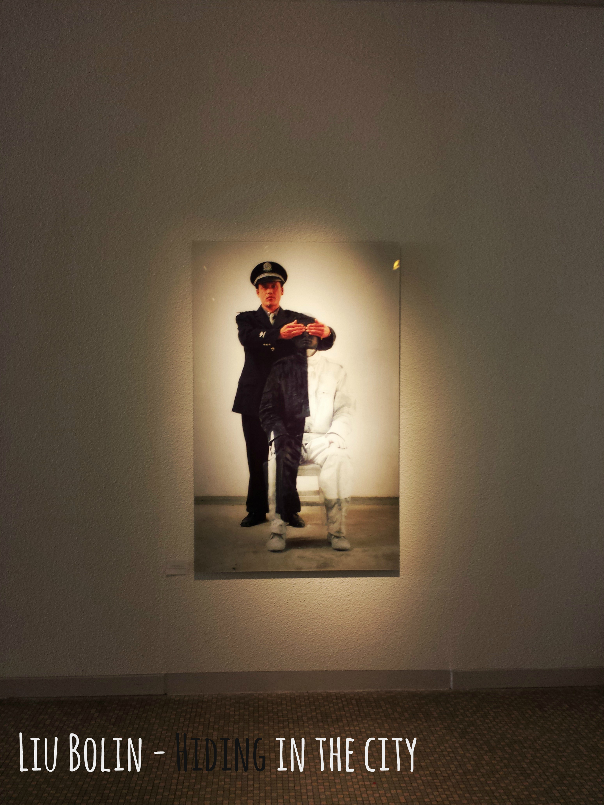 Le centre culturel Valéry Larbaud ne paye pas de mine, vu de l’extérieur. Mais une fois dedans, c’est une vaste salle d’exposition, colonnes et hauteur sous plafond impressionnantes. Je suis d’habitude peu fan des portraits, en photo (et en peinture également) mais là j’admets que la plupart des séries m’ont plu. Je ne vais pas vous détailler le travail de chaque artiste, le dossier de presse le fait très bien. Je peux dire que mon coup de cœur est allé à Liu Bolin. Énorme travail de camouflage de ses sujets, avec la pièce maîtresse, ce policier masquant les yeux d’un autre personnage devenu transparent. Le symbole est fort, et la réalisation époustouflante.