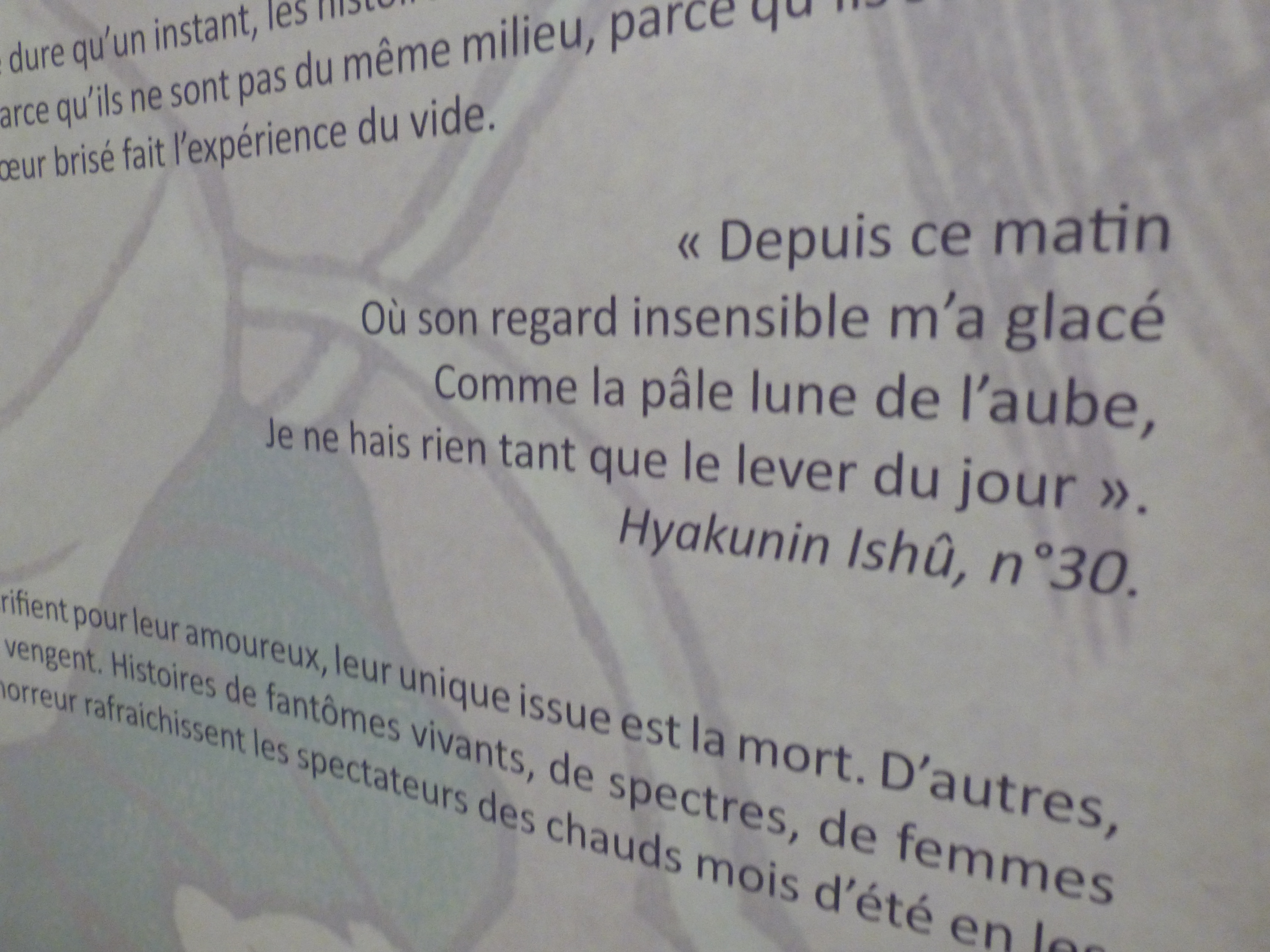 « Le Japon amoureux »… titre ô combien évocateur… N’allez pas imaginer qu’il s’agit d’une expo d’estampes coquines (et non moins magnifiques) du maître Hokusai. Le Japon amoureux c’est celui du XIXe siècle, de la période Edo, de la littérature, des maisons de thé, des samouraïs, des tenues d’apparat, des belles coiffures, du théâtre kabuki et des maisons de geishas… Le Japon où les sentiments se camouflent pour mieux se révéler dans les arts. Superbe exposition d’estampes et d’objets somptueux, pour un voyage dans le temps coloré et poétique.