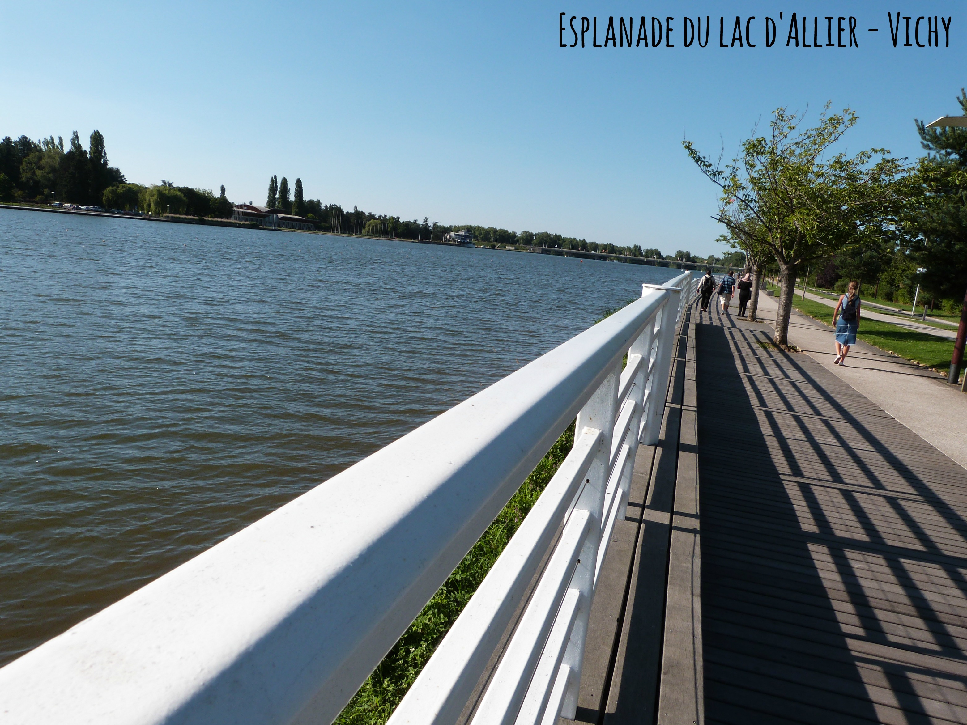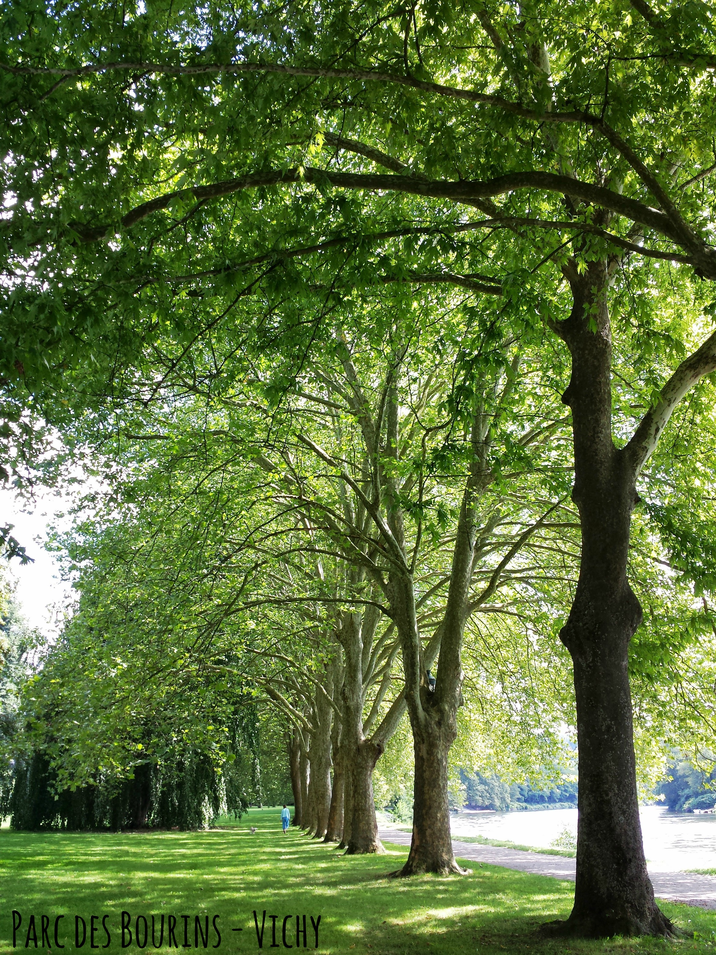 Je termine ma trilogie sur Vichy avec une petite balade urbaine. Après l’expo « Portrait(s) » et le musée des arts d’Afrique et d’Asie, je ne peux pas m’empêcher de revenir sur les charmes de cette ville dont il ressort de manière assez nette que je pourrais tout à fait m’y voir vivre. Voilà, c’est dit. L’atout principal pour moi c’est clairement les parcs et la promenade interminable le long de l’Allier. Je pense que c’est agréable en toutes saisons mais aux beaux jours, c’est particulièrement le pied. Belles allées d’arbres, parcs arborés et coupés des bruits de la ville, petite plage ensoleillée, promenade sur les planches à faire en marchant, à vélo, en joggant ou en rosalie, le bar à cocktails, le Tahiti plage du parc des Bourins, où il fait bon siroter un mojito ou un smoothie en contemplant les avironneurs au soleil couchant… Bref, le top pour décompresser.