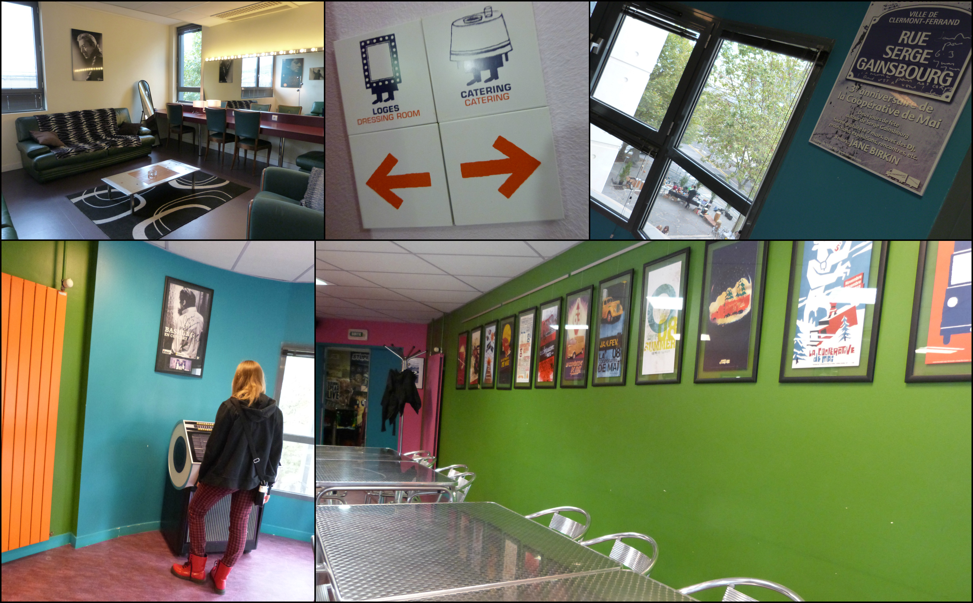 Détour ensuite par les bureaux et rencontre de l’indéboulonnable directeur, Didier Veillault. Parisien venu prendre les manettes d’une salle naissante à Clermont-Ferrand en 2000. Pari aussi étrange que miraculeux. Qu’aurait été cette salle sans lui ? J’aime mieux ne pas l’imaginer… Petit topo puis direction le restaurant. La restauration à La Coopé est indéniablement un de ses (multiples) points forts, et même une grande fierté. Gérée par l’association Six-Trois et par des personnes en réinsertion, le restaurant (très agréable et coloré) propose aux artistes des plats équilibrés et frais. Une vraie plus-value pour les troubadours sur les routes, aux horaires anarchiques et à l’alimentation bousculée.