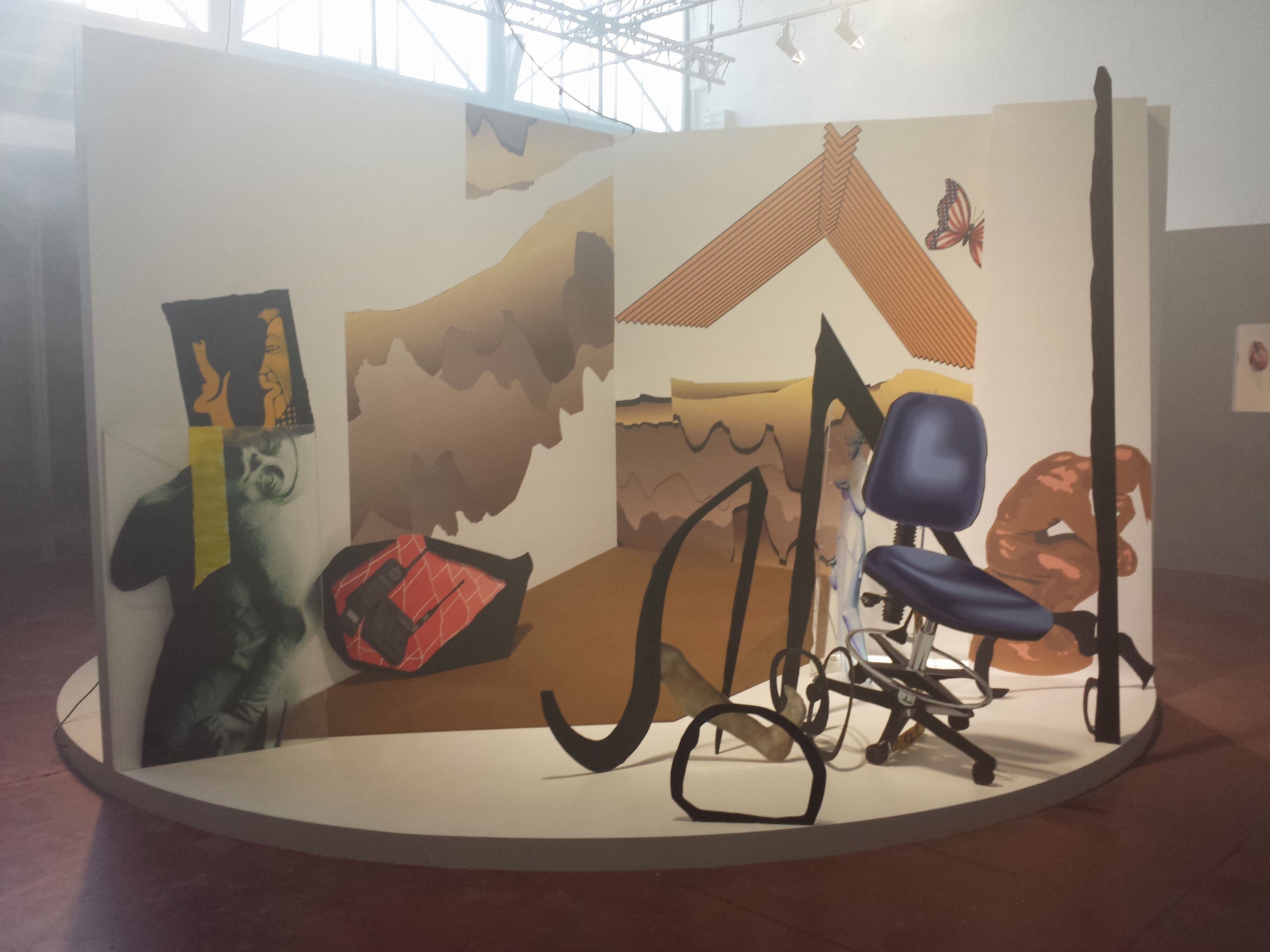 (2e Vine : Claudia Wieser (Treppen) pour le collage, et Alicia Frankovich (Man walked on the moon) pour l’installation bondissante)