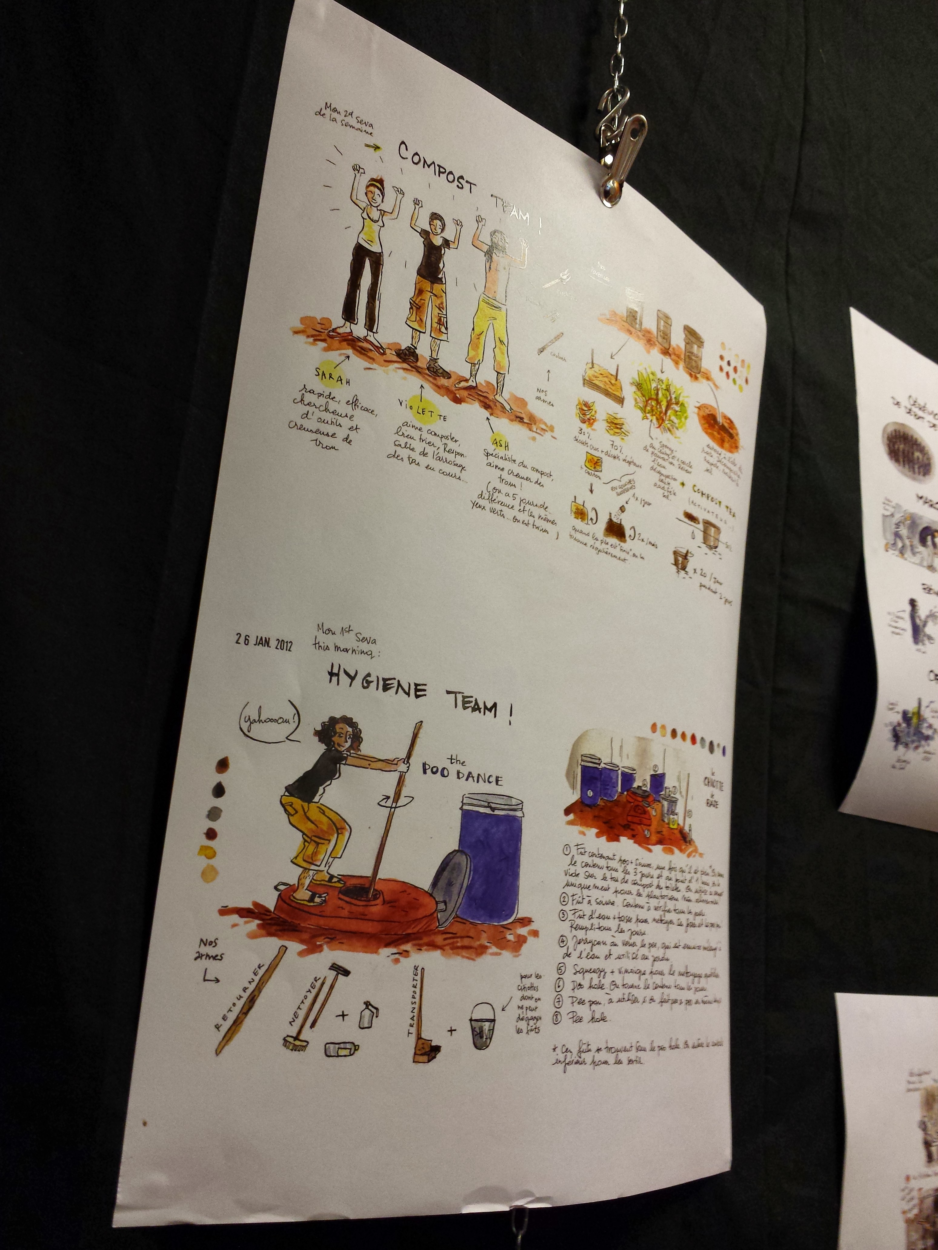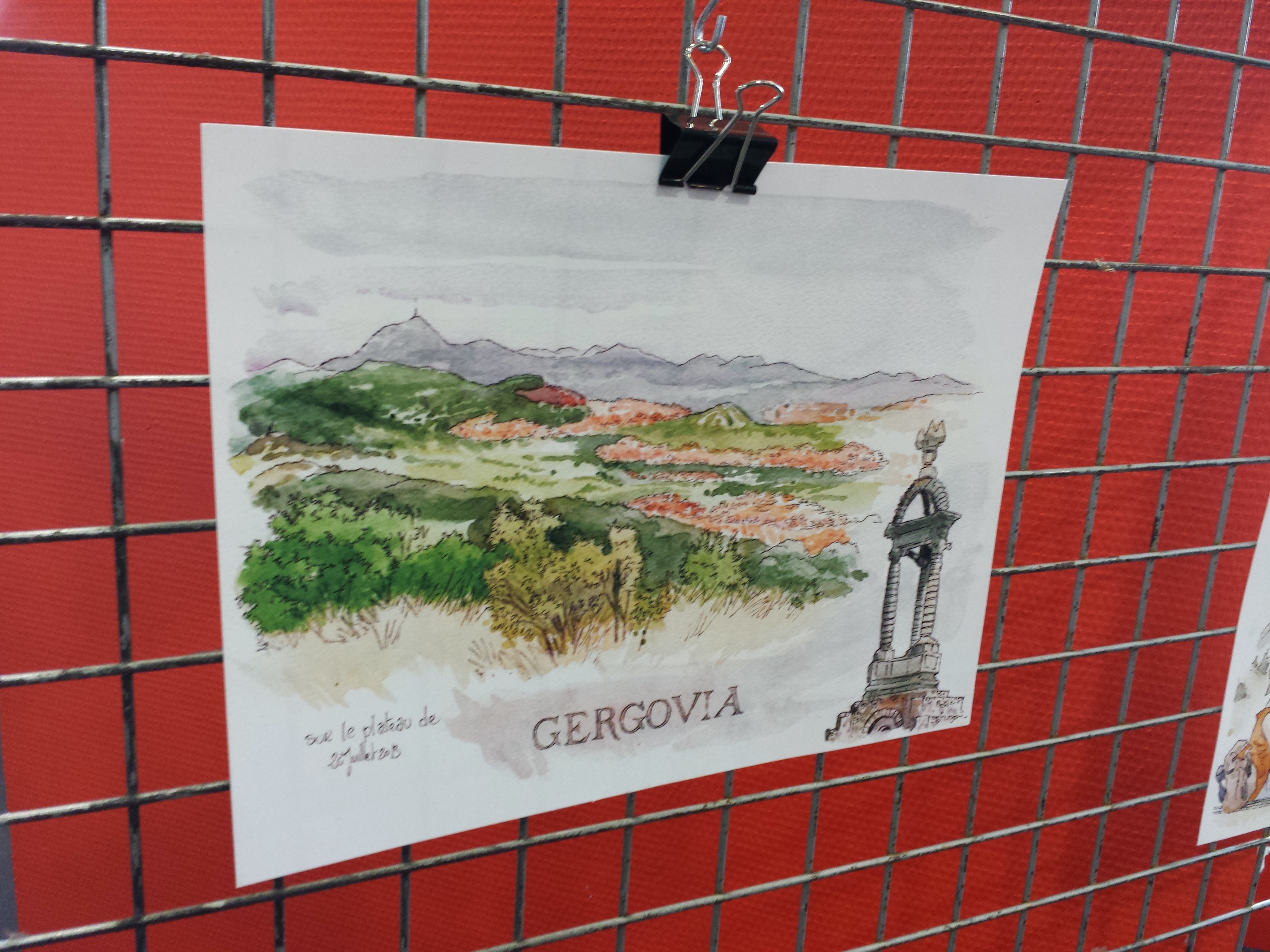 Pas de bol pour la présentation des dessins de cet été des Urban sketchers : les dessins recto verso affichés sur une grille devant une fenêtre, c’est pas l’idéal !