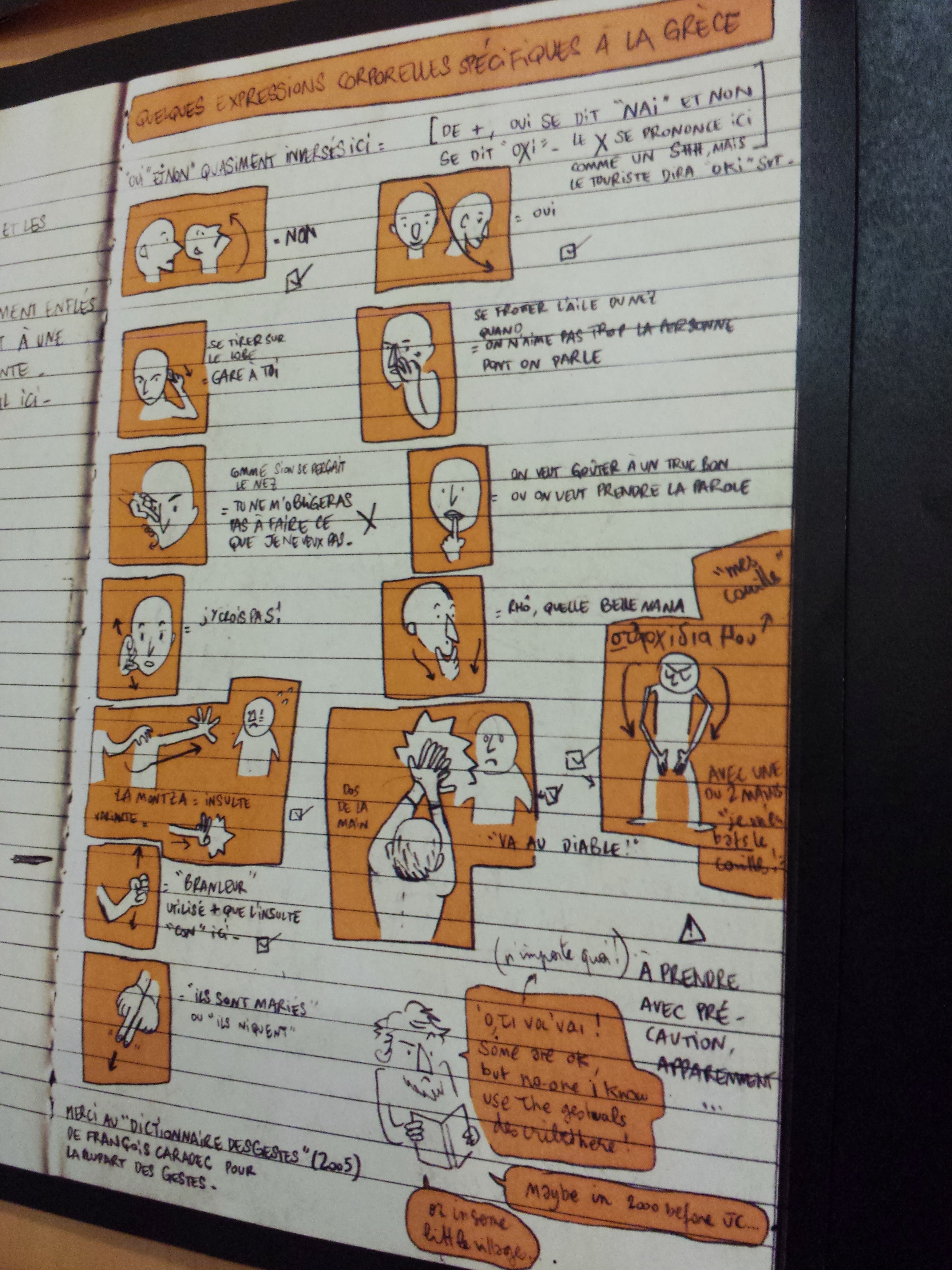 1. @Val : merci de rendre à Violette ce qui appartient à Violette ! Je n’ai malheureusement pas noté le nom des carnettistes dont j’ai pris le travail en photo. Sauf pour la planche sur la Grèce, où j’ai photographié l’url du blog de la demoiselle, dont l’esprit et le trait m’ont rappelé Marion Montaigne. Je n’ai pas encore pris le temps d’aller dessus.
