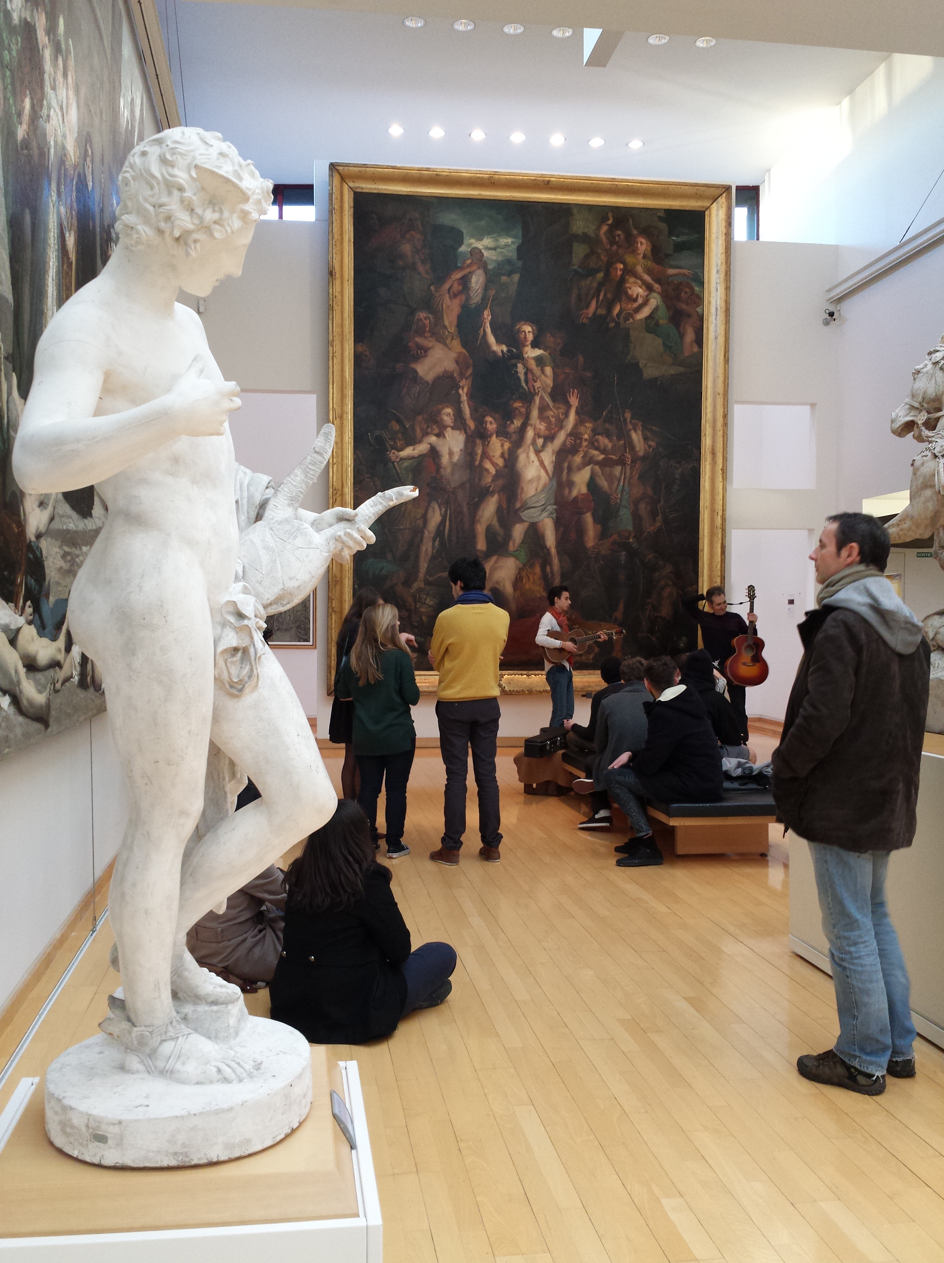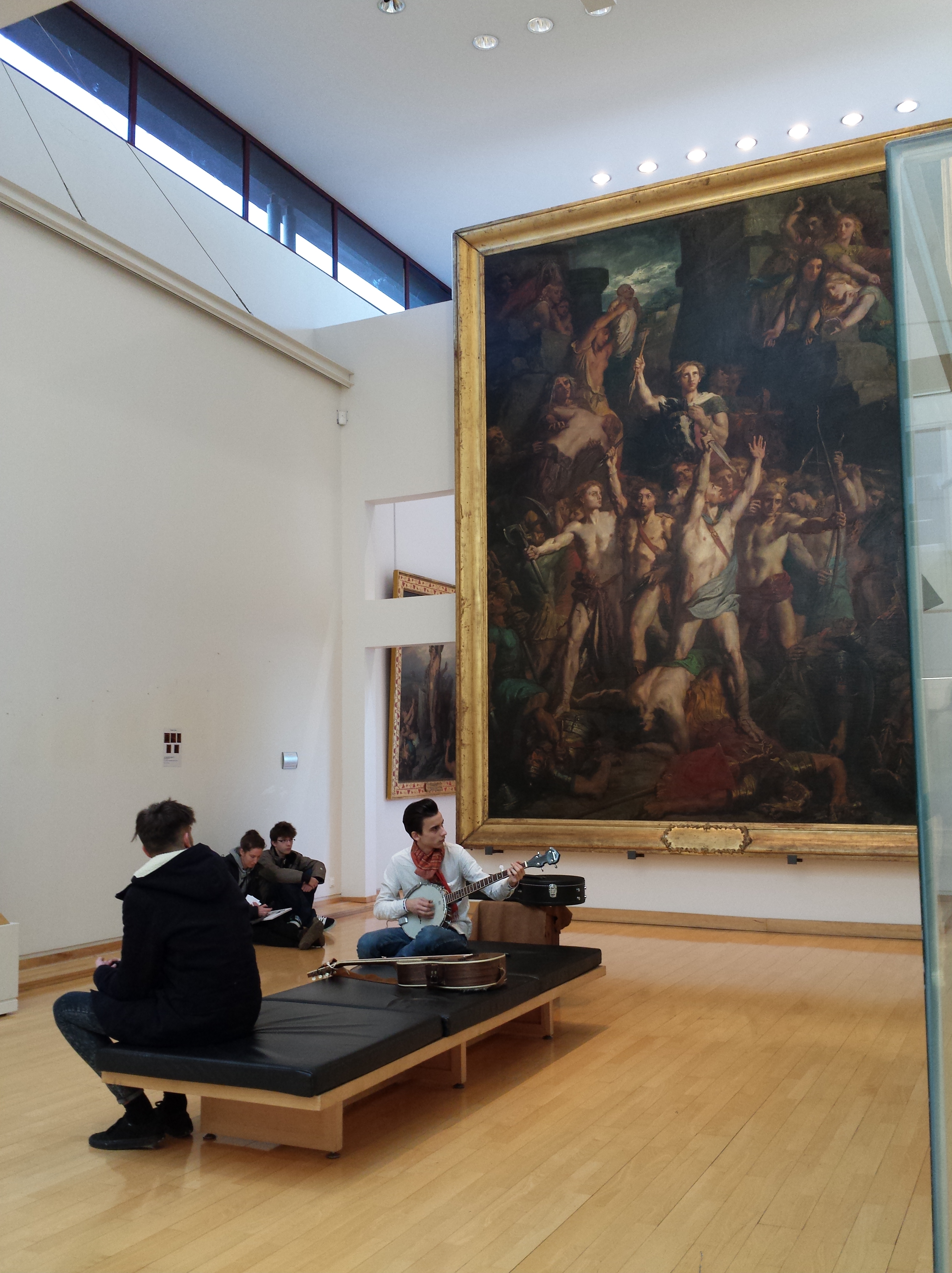 Rebelote au MARQ avec The Blue Devils, que je ne connaissais pas. Au programme de l’après-midi, une première partie acoustique sous la verrière, une deuxième partie électrique dans la salle d’expo temporaire du rez-de-chaussée et un final acoustique au dernier étage, dans la grande galerie, face à Vercingétorix sur son cheval.