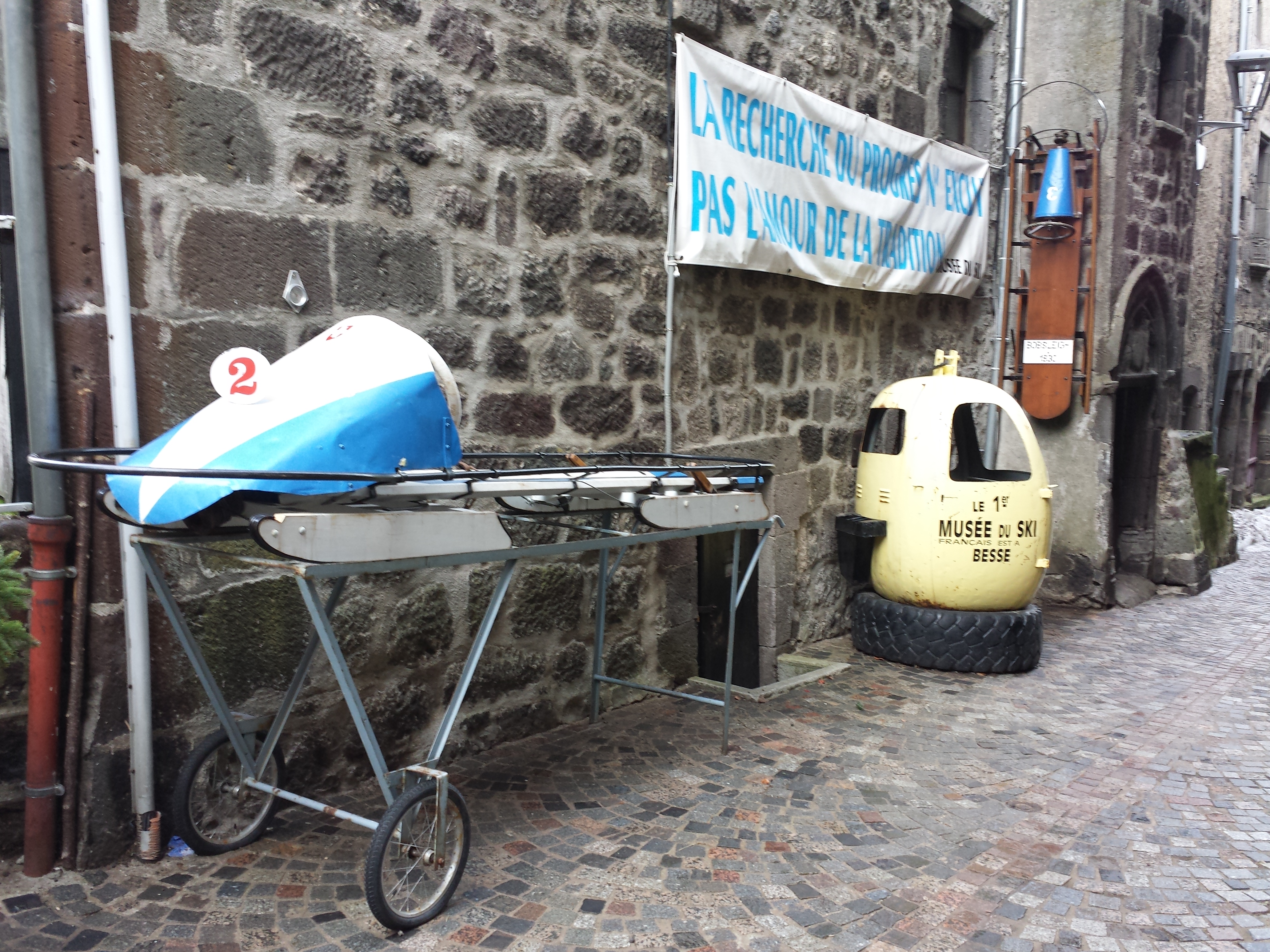 Histoire de digérer, nous faisons un petit tour du village, dont j’aime les vieux bâtiments et les curiosités locales, comme le musée du ski et son exposition insolite. Je ne l’ai pas visité mais les « engins » exposés dehors font rêver !