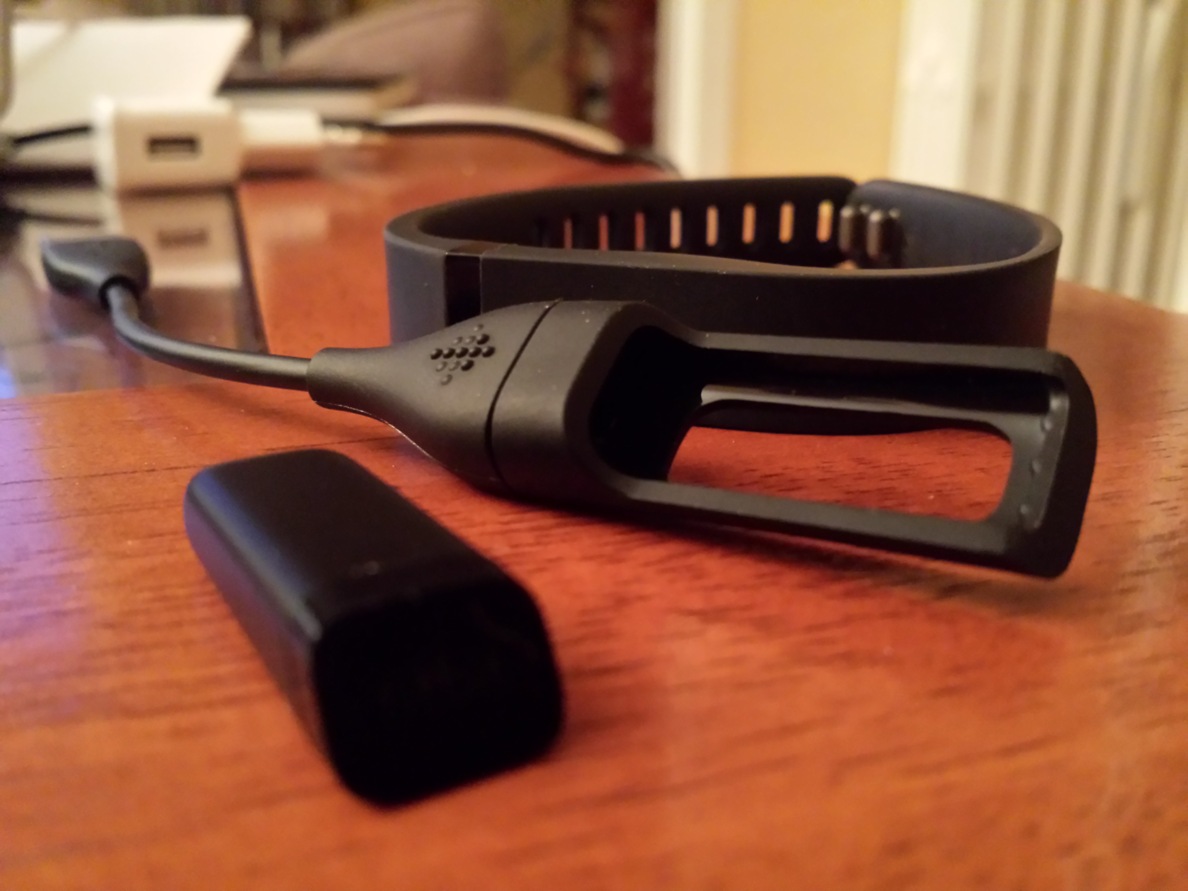 Le Flex se recharge via un câble spécial USB. À ne pas perdre donc. Ce qui sous-entend qu’il faut retirer l’objet électronique du bracelet en silicone et donc se passer de monitoring pendant toute la durée de la charge. Ma première recharge est mal tombée, c’était après le Pariou et même si je pense que la batterie aurait tenu pour le puy de Dôme le lendemain, j’ai préféré recharger pendant la nuit, perdant du coup le monitoring de cette dernière. La charge est assez longue. Le mieux étant de recharger pendant qu’on glande sur le PC ou devant la télé pour ne pas trop fausser les données du jour.