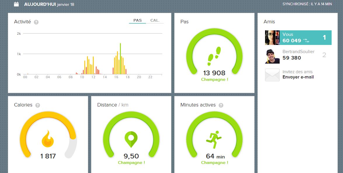Je note que pour chaque objectif réalisé, Fitbit écrit « Champagne ! » sous le module. Je vais finir par le prendre au mot.
