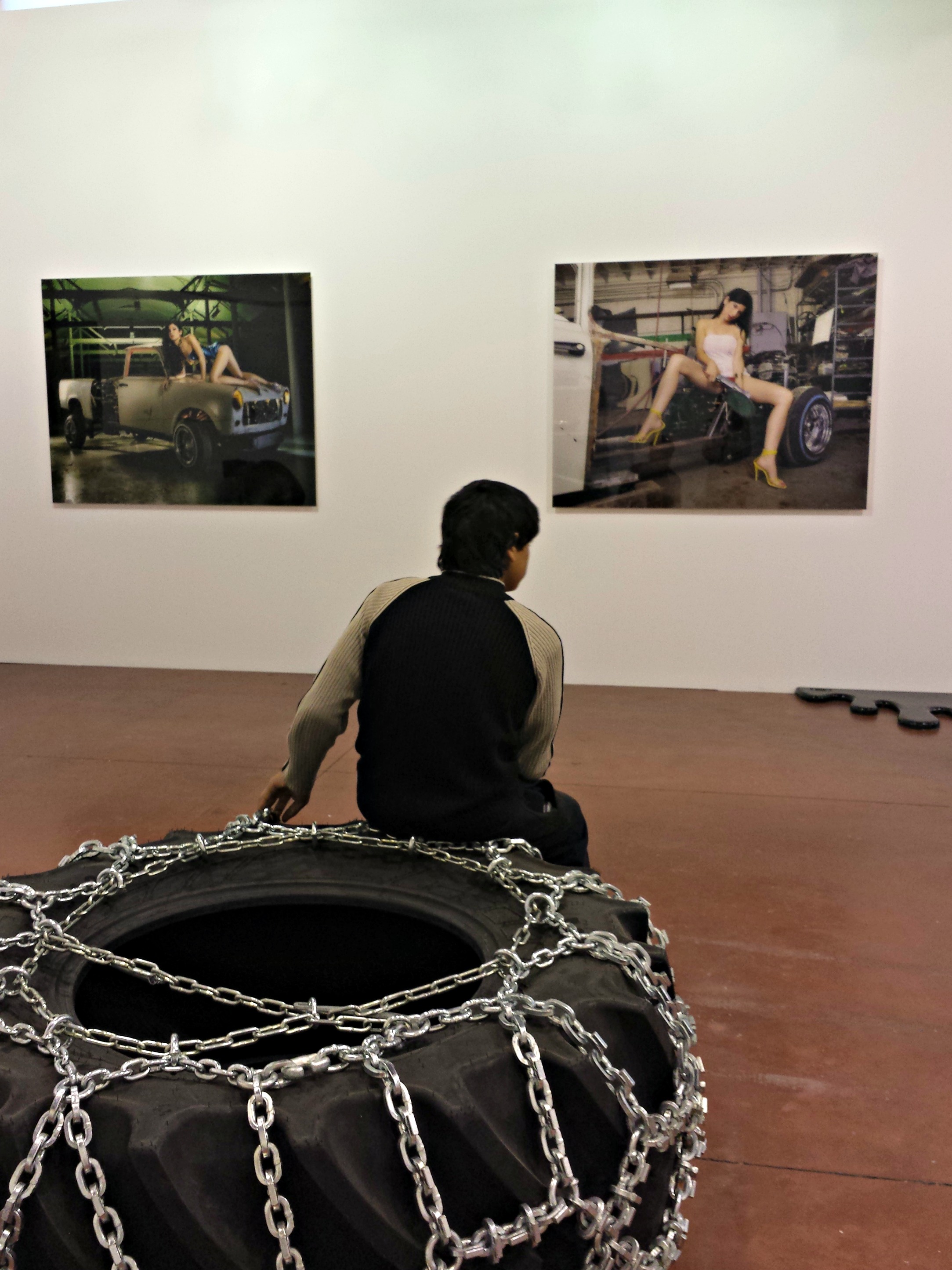 La Tôlerie, avant d’être rachetée par la ville de Clermont, en était une. De tôlerie. Un garage quoi. Cette expo n’est qu’un retour aux sources du lieu, qui retrouve les bonnes odeurs de gomme et les jolies pépées au mur.