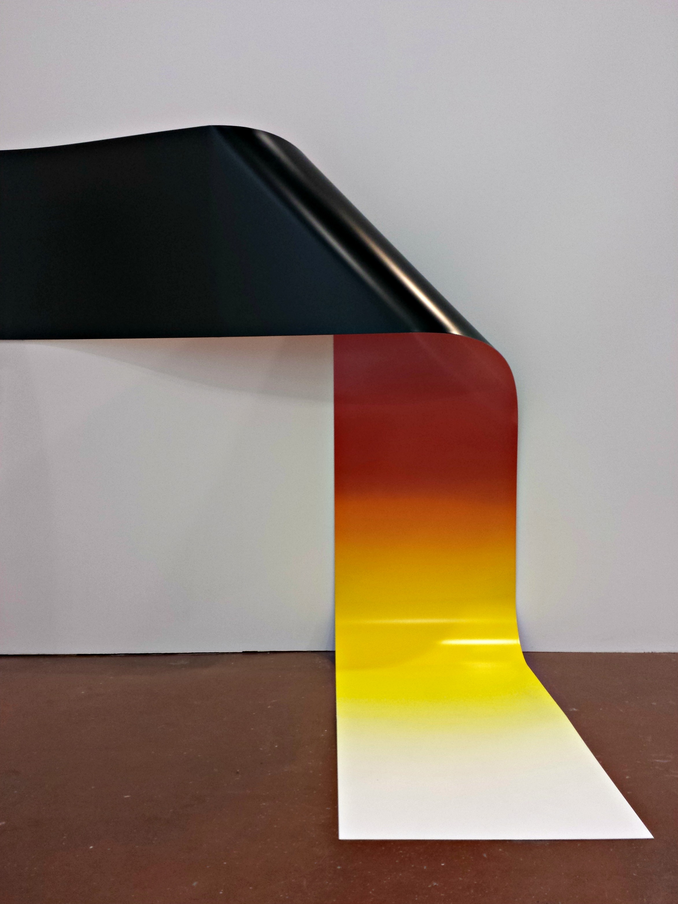 Dernière œuvre de la première salle, la grande plaque de tôle tordue et laquée de Morgane Tschiember. C’est orange donc magnifique. Mais je ne suis probablement pas objective…