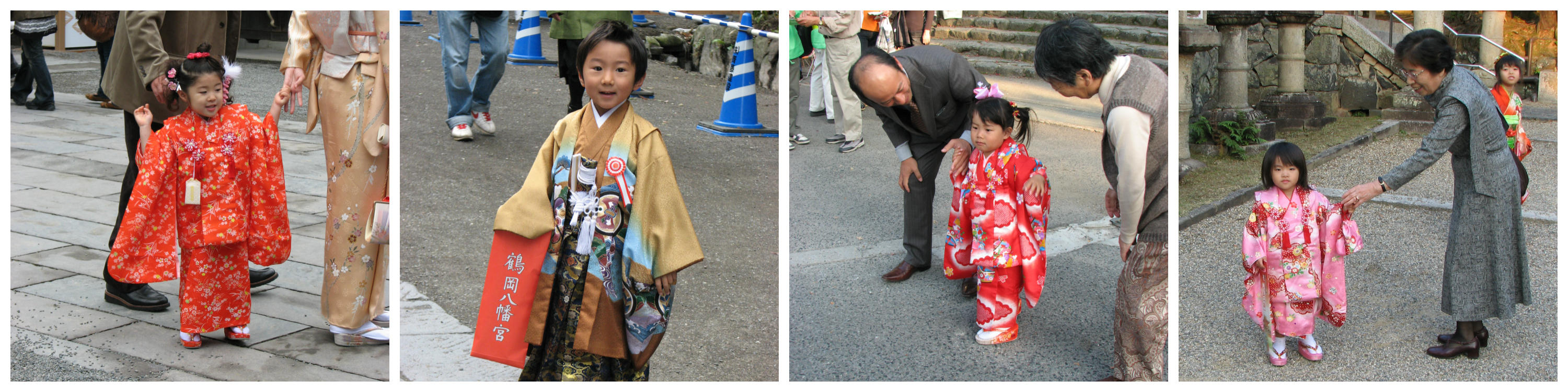 Alors comme le 5 mai, c’est la journée des enfants au Japon… les cadeaux ont été distribués aux enfants (ouin). Maïko est revenue sur cette fête populaire, à l’origine la fête des garçons. Le 5 mai est un jour férié. Le jour des filles c’est le 3 mars et… ce n’est pas férié. Du coup, on considère que le 5 mai est la journée des enfants mais personne n’est dupe, les petits garçons sont pourris gâtés. Il y a une autre fête à l’automne pour les enfants, autour du 15 novembre, les sept-cinq-trois. Je pense que certains Japonais avaient anticipé un peu à l’époque de mon voyage là-bas car on avait croisé plein d’enfants endimanchés dans les temples. Les pauvres se faisaient mitrailler par les touristes (et donc par moi, exemple ci-dessous).