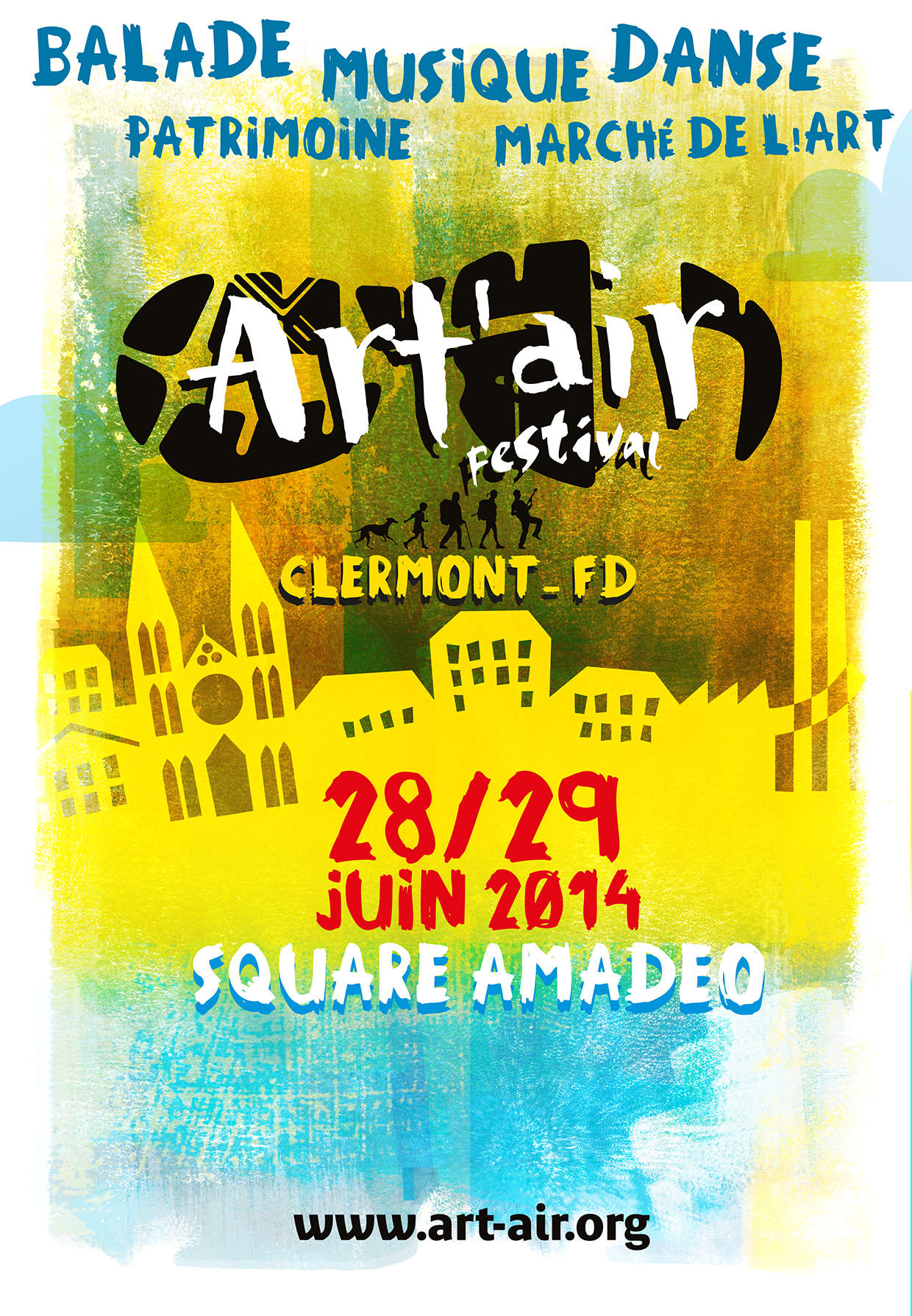 AFFICHE ART'AIR SESSION URBAINE V5Cette année par exemple, le festival pose ses godasses de rando à Clermont, pour une session urbaine qui promet d’envoyer du lourd. Celle-ci aura lieu les 28 et 29 juin (un week-end). J’y serai le 28 et j’ai hâte d’y être. La rando nous mènera, grâce à un topo-guide, à la découverte du patrimoine historique et architectural de la ville et tout au long du parcours des animations viendront agrémenter la balade : concert de Léopoldine (talentueuse artiste clermontoise actuellement en lice dans un radio-crochet sur France Inter), spectacle de danse (une exclu de la compagnie S.O.o.N) à la chapelle des Cordeliers (que j’adore), séance de courts-métrages à la Jetée, dégustations… la liste est longue et la journée sera bien remplie ! Notez que ces animations sont réservées aux personnes ayant souscrit à un pass journée ou demi-journée. Toutefois, plein d’animations gratuites sont accessibles à tout le monde et notamment le marché de l’art au superbe marché Saint-Joseph avec des artistes que j’ai hâte de retrouver (Jérôme De Sousa, Art won’t wait…), ou toutes les animations prévues au square Amadéo (limite Clermont-Chamalières) avec disco soupe (avec Clémence !!), atelier couture de pochettes de CD avec Kütu Folk Records, yoga, marche nordique… Bref, de quoi vous occuper un moment si vous ne voulez pas faire la rando. Le concert à 21h sera également gratuit.