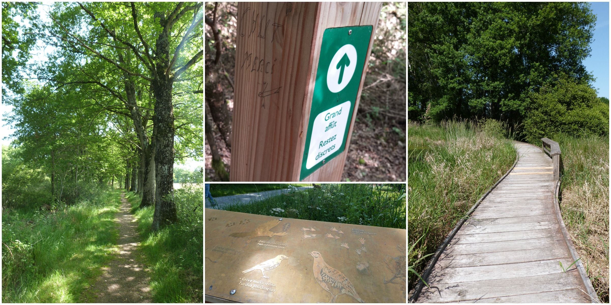 Aucune difficulté dans la balade, à part peut-être sur le dernier passage au bord de l’étang juste avant la maison de site. Le sentier est parfois inondé mais un itinéraire de contournement est prévu dans le champ juste au-dessus. En ce samedi très chaud et ensoleillé de juin, les passages à couvert sous la fraîcheur des arbres étaient franchement bienvenus. Il faut noter que la plus grande partie de la balade se fait assez loin de l’étang. Pour ceux qui veulent admirer l’eau et les oiseaux, le plus simple est de faire un aller-retour d’un côté ou de l’autre, jusqu’à l’affût des Hérons  ou l’affût des Trois bouleaux.