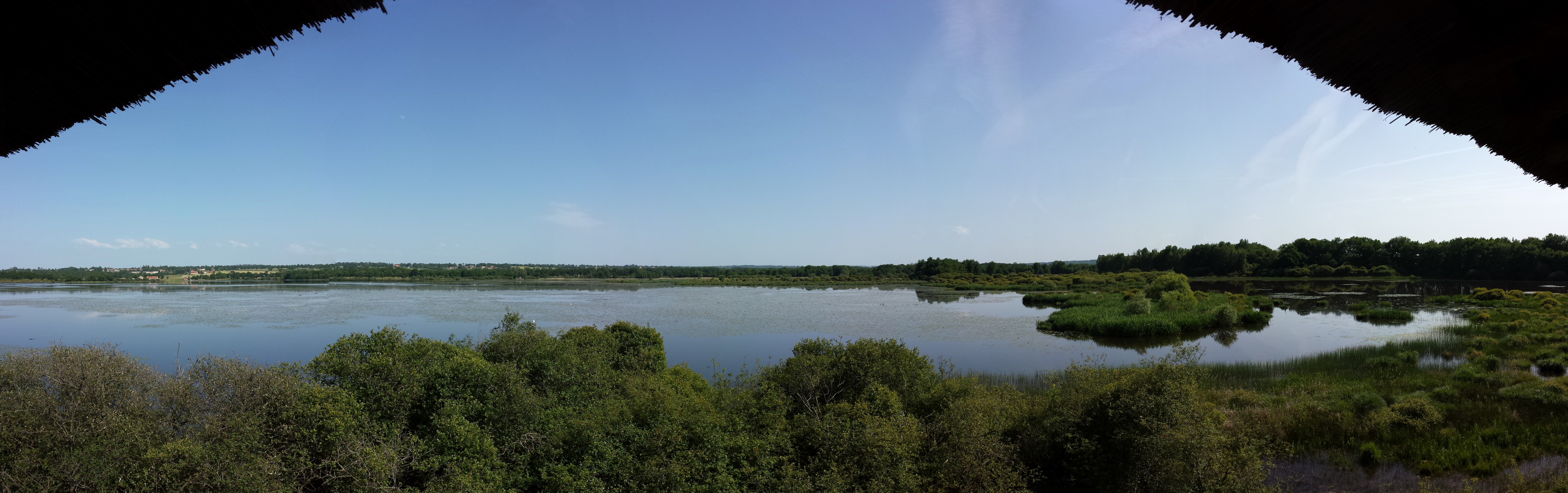 Le site est extrêmement bien aménagé. Le sentier d’environ 6 km (un peu plus je pense avec les allers-retours aux affûts) est plat, bien entretenu. Des aménagements de bois (pontons, affûts) s’intègrent parfaitement dans le paysage. J’ai noté la présence de haies artificielles composées de branchages. Je ne sais pas si elles sont là pour empêcher les promeneurs de divaguer (interdiction de sortir du sentier) ou pour protéger la faune des prédateurs terrestres. Les deux, sûrement. Des tables de lecture permettent de signaler quelques espèces animales et végétales. Elles sont très jolies et discrètes mais attention à vos mains et surtout celles de vos bambins : après quelques heures au soleil, vous pouvez apporter les brochettes et les chipos pour un barbecue ! (j’exagère un peu, mais c’est chaud quand même).