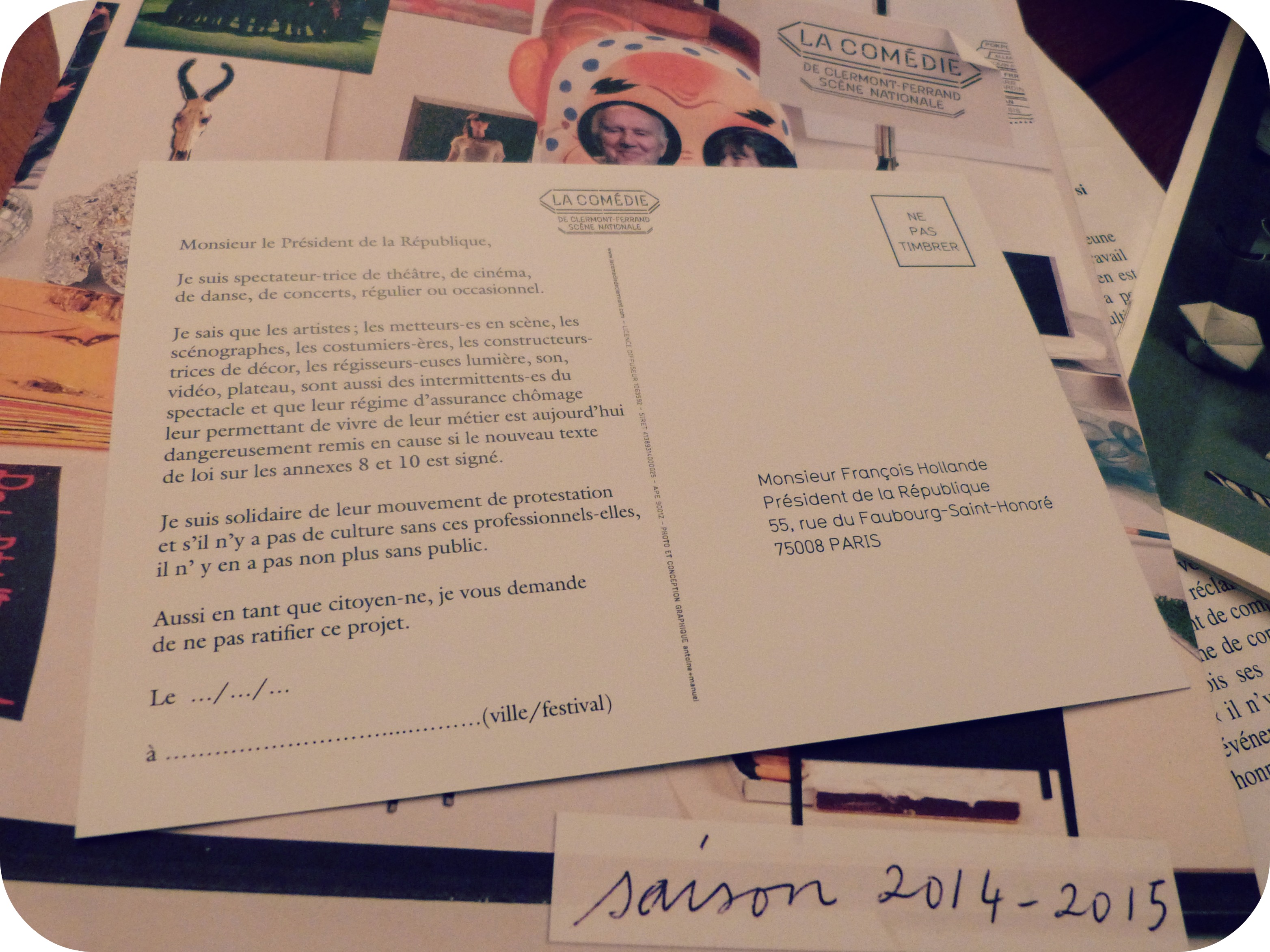 Que je ne suis pas forcément à 100% pour le mouvement des intermittents, probablement parce que ceux que je connais profitent tellement du système que ça n’encourage pas à se battre pour eux. Et qu’ils ne sont pas les seuls à bosser dur, dans la précarité, en déplacement… Et j’imagine que la plupart ont la chance d’aimer leur métier… Mais bon, pas de généralisation.