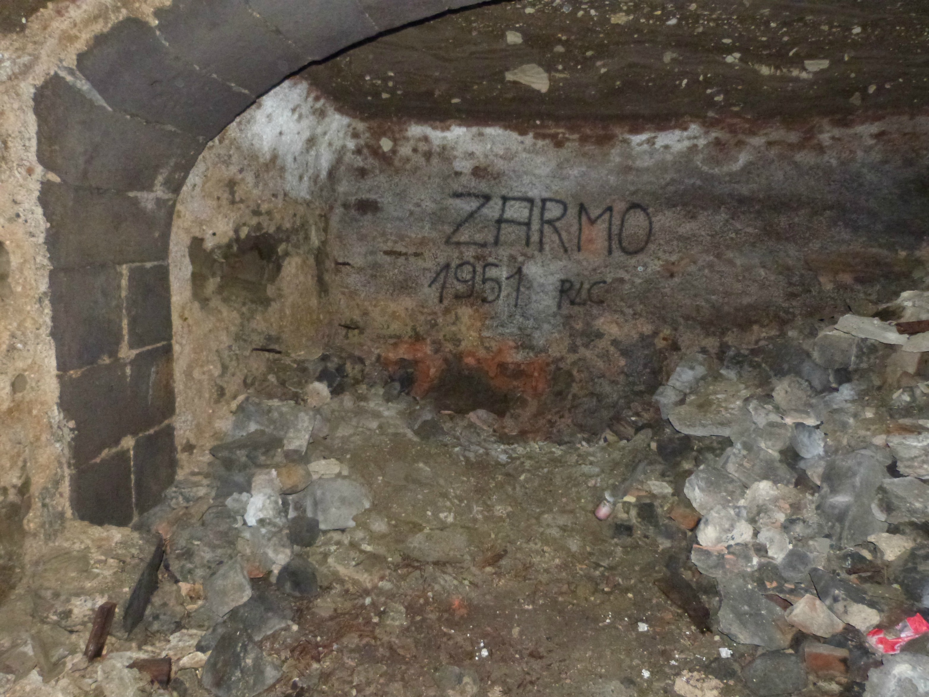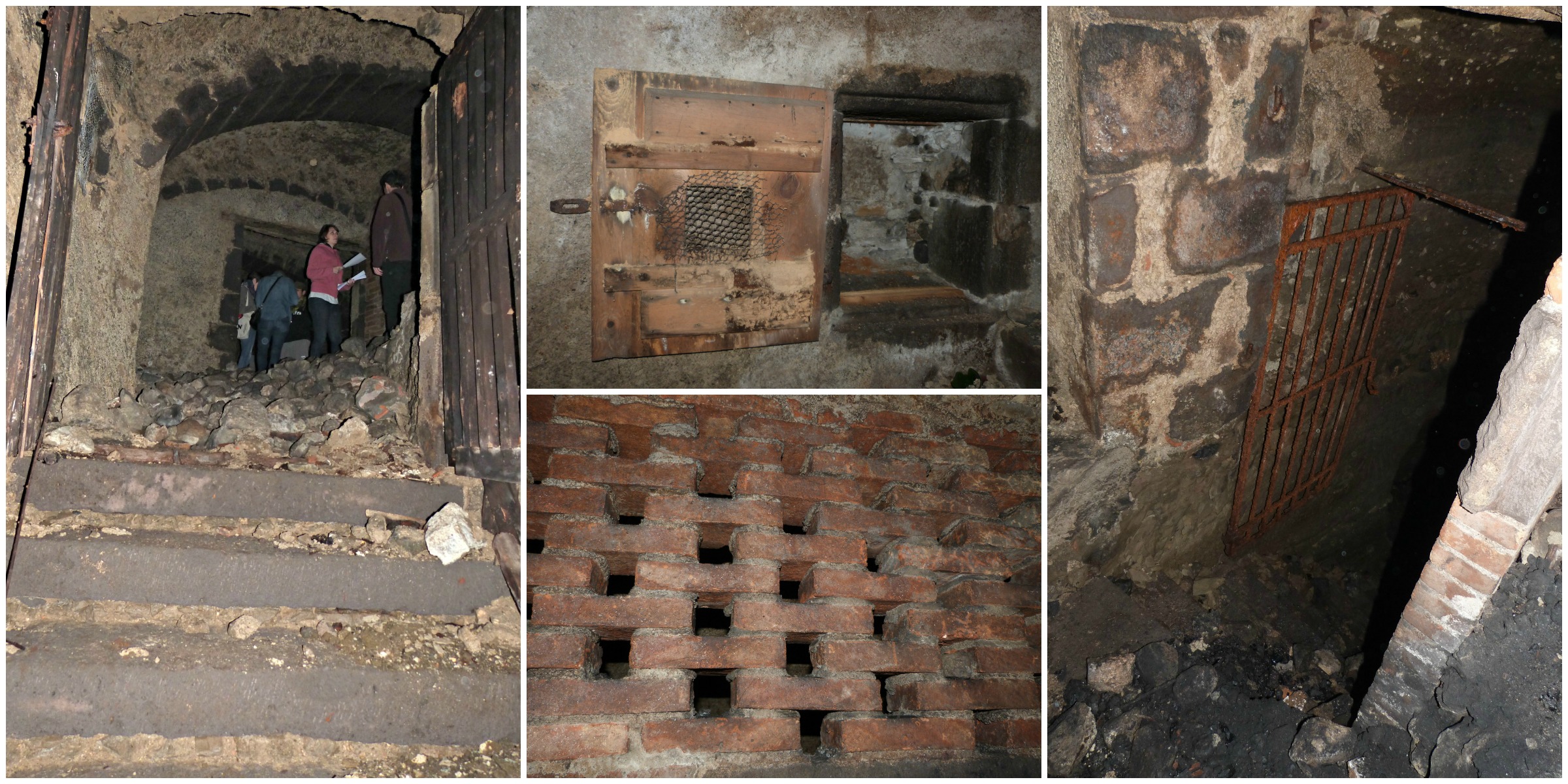 Le temps de plier le matériel du groupe, le public a quartier libre pour visiter la cave. Je n’avais pas réalisé, en entrant, que je pénétrais un dédale de couloirs, d’escaliers et de salles souterraines. Je suis fascinée par la surface de cet espace. J’ai certes un chapeau pour éviter les chocs avec les parois mais je n’ai pas les bonnes chaussures. Je glisse, avec mes semelles lisses, sur les gros cailloux humides mais qu’importe, je veux visiter ! Je descends ici, je monte par là… des salles, des alcôves, des niches… je mouline furieusement ma lampe de poche pour éclairer les moindres recoins, j’essaie de deviner le passé de cette cave sans y parvenir. Un vrai palace ! Je me suis munie de mon bridge donc je peux prendre quelques photos au flash pour immortaliser ce lieu que je ne reverrai sûrement jamais. La balade est courte, c’est déjà l’heure de la projection des courts-métrages. Morgane et Guillaume sont restés.