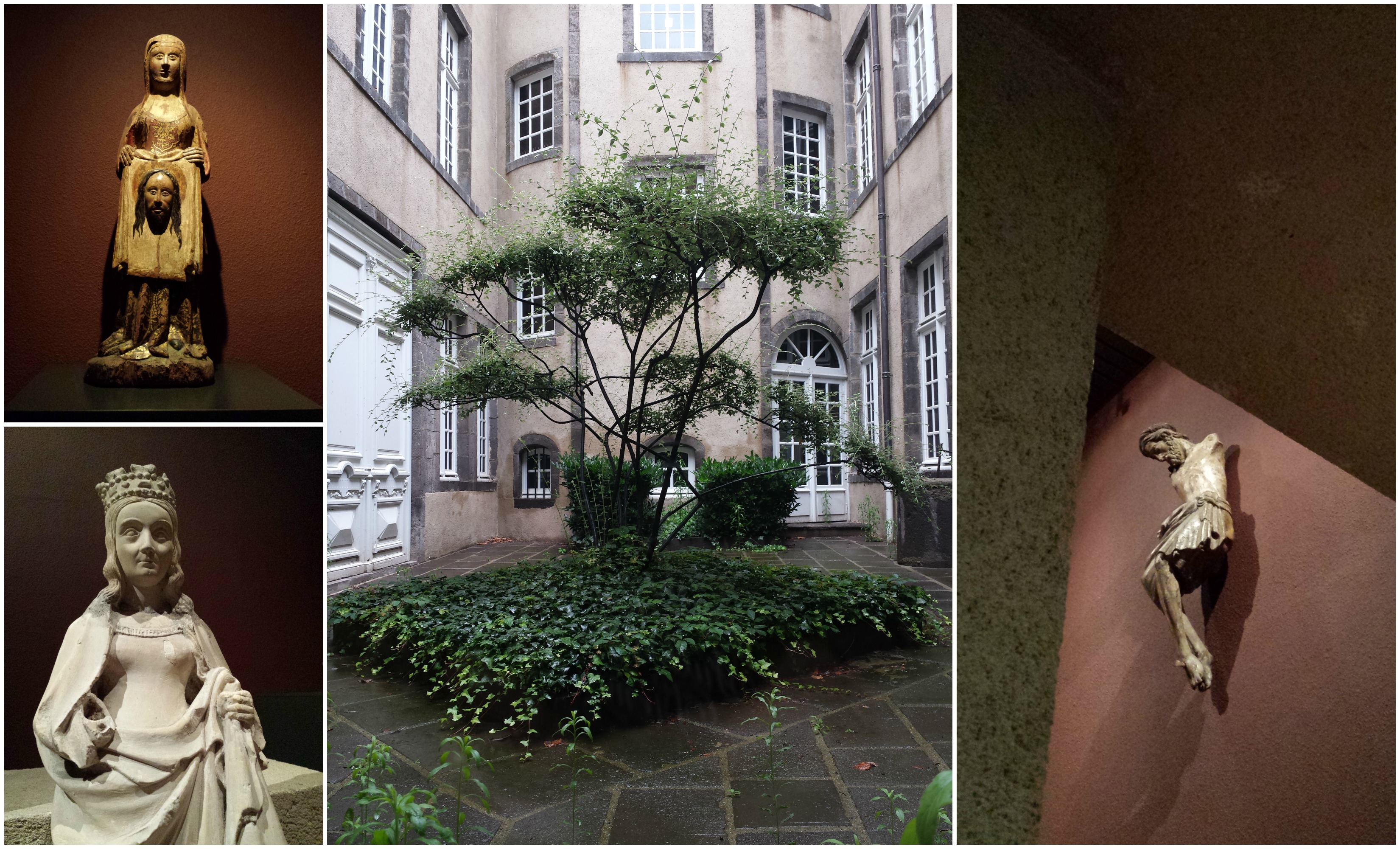 Après une heure de visite, nous avons décidé de parcourir les collections permanentes (la pluie tombait dru à l’extérieur). Le musée Mandet est un magnifique bâtiment dans lequel il est agréable de se perdre. Escaliers, patio, jardin, verrière, salles obscures ou caves… nous n’avons pas fait les espaces consacrés aux peintures même si j’en ai eu un aperçu lors du vernissage Le Gall.  Antiquités grecques et égyptiennes, faïence, armures, sabres et pistolets… les collections sont impressionnantes et fort bien mises en valeur.