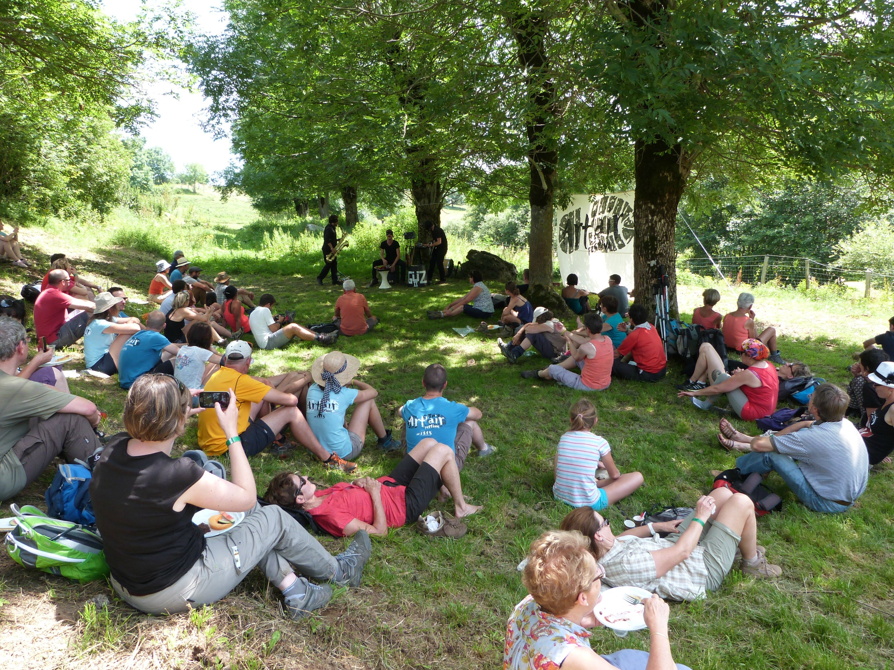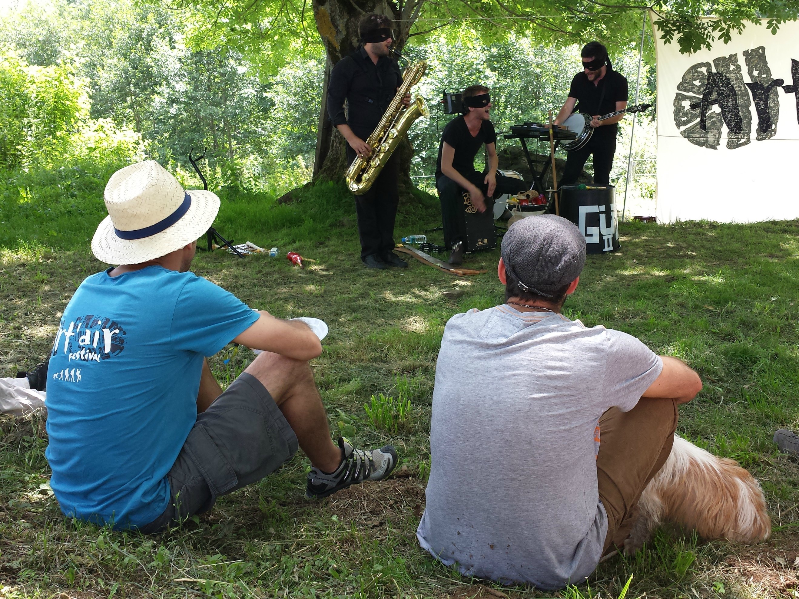 Juste le temps de se lécher les doigts pour récupérer les dernières traces de chocolat et c’était déjà l’heure, non pas de repartir, fort heureusement, mais de se poser dans l’herbe pour profiter du concert de Güz II. Débarqués de Rennes, ils nous ont servi un set parfaitement réjouissant et plein d’humour. Saxophone, banjo, contrebasse-poubelle ou scie musicale… de quoi se détendre sans s’endormir avant la reprise.