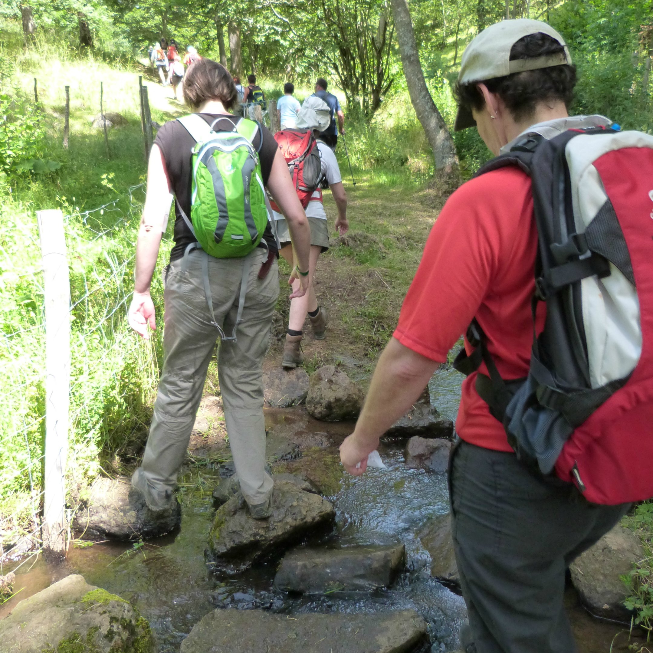 La randonnée s’est poursuivie sur de jolis chemins avec vue (dans notre dos) sur le puy de Dôme. Un petit arrêt à Berzet devant la petite chapelle Saint-Agathe avant de repartir sur les chemins pour une dernière ligne droite avant la pause miam miam. C’est que le petit déj’ commençait à être loin ! Cette fameuse dernière ligne droite, je l’ai d’ailleurs trouvée aussi agréable que rageante. Nous avons longé pendant un long moment l’Artière, petite rivière (clik pour tous les détails) qui court de Saint-Genès-Champanelle aux Martres-d’Artière et qui passe à deux pas de mon boulot en zone industrielle de Clermont (je l’enjambe joyeusement plusieurs fois par semaine). Il faisait chaud, j’avais les pieds en ébullition, j’avais faim et soif, et une furieuse envie de me jeter dans le cours d’eau. J’ai oublié de préciser que la journée du 18 juillet a été l’une des journées les plus chaudes (LA plus chaude ?) depuis le début de l’été avec un petit 39°C enregistré à Clermont. Bref une jolie balade jusqu’à notre point intermédiaire d’arrivée : Saint-Genès-Champanelle, après un dénivelé de 643 m et une distance de 11,2 km.