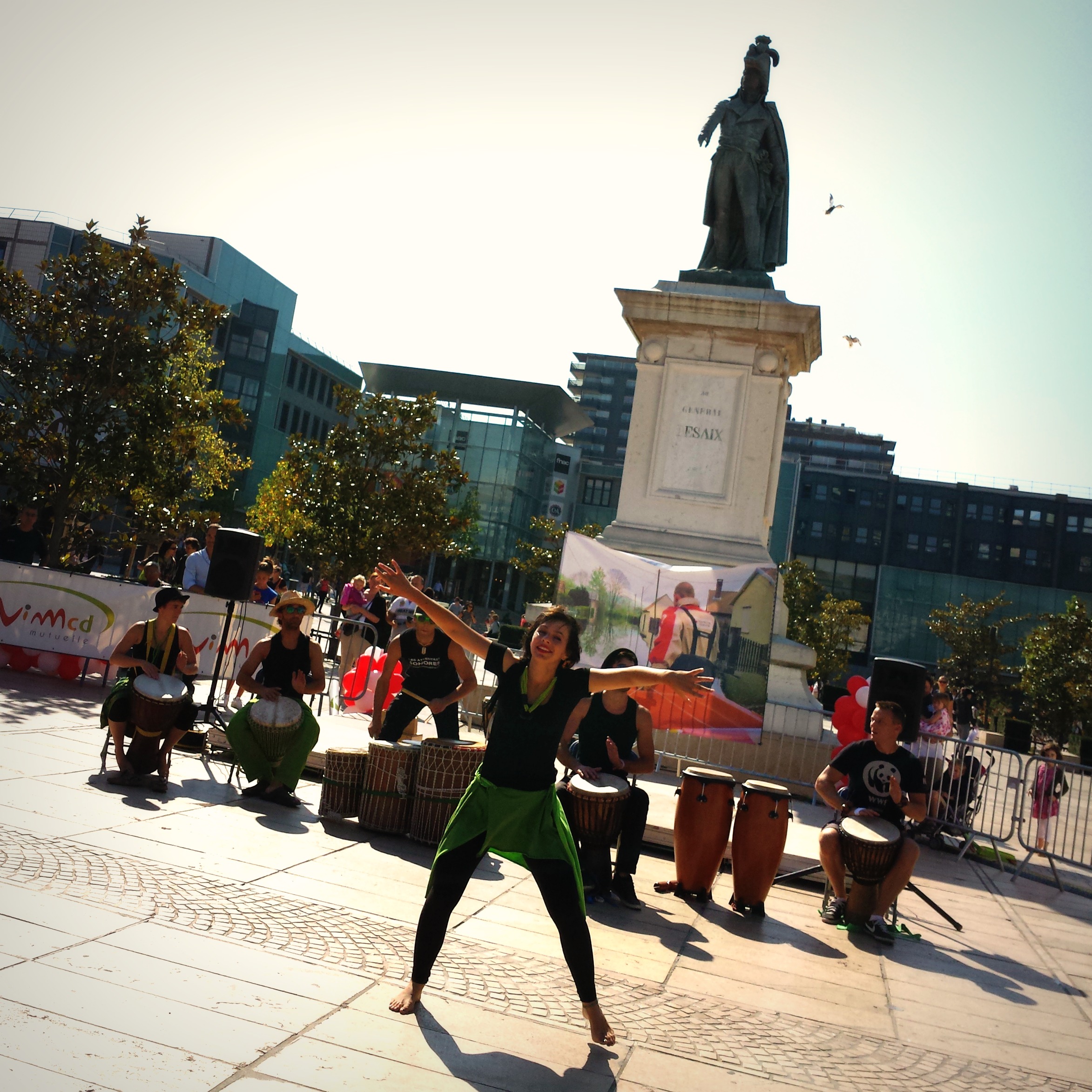 Pour nous accompagner sous un soleil de plomb, le groupe Les Attentats Sonores, constitué de percussions et de jeunes femmes charmantes exécutant des chorégraphies entraînantes.