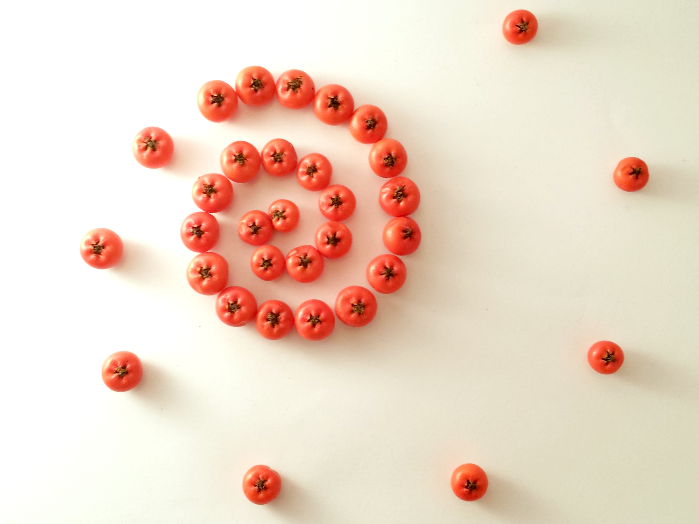 Les baies (non comestibles) permettent toutes sortes de créations, en groupe, en formes identifiables, à la queue leu leu, en vrac… on pourrait y passer des heures.