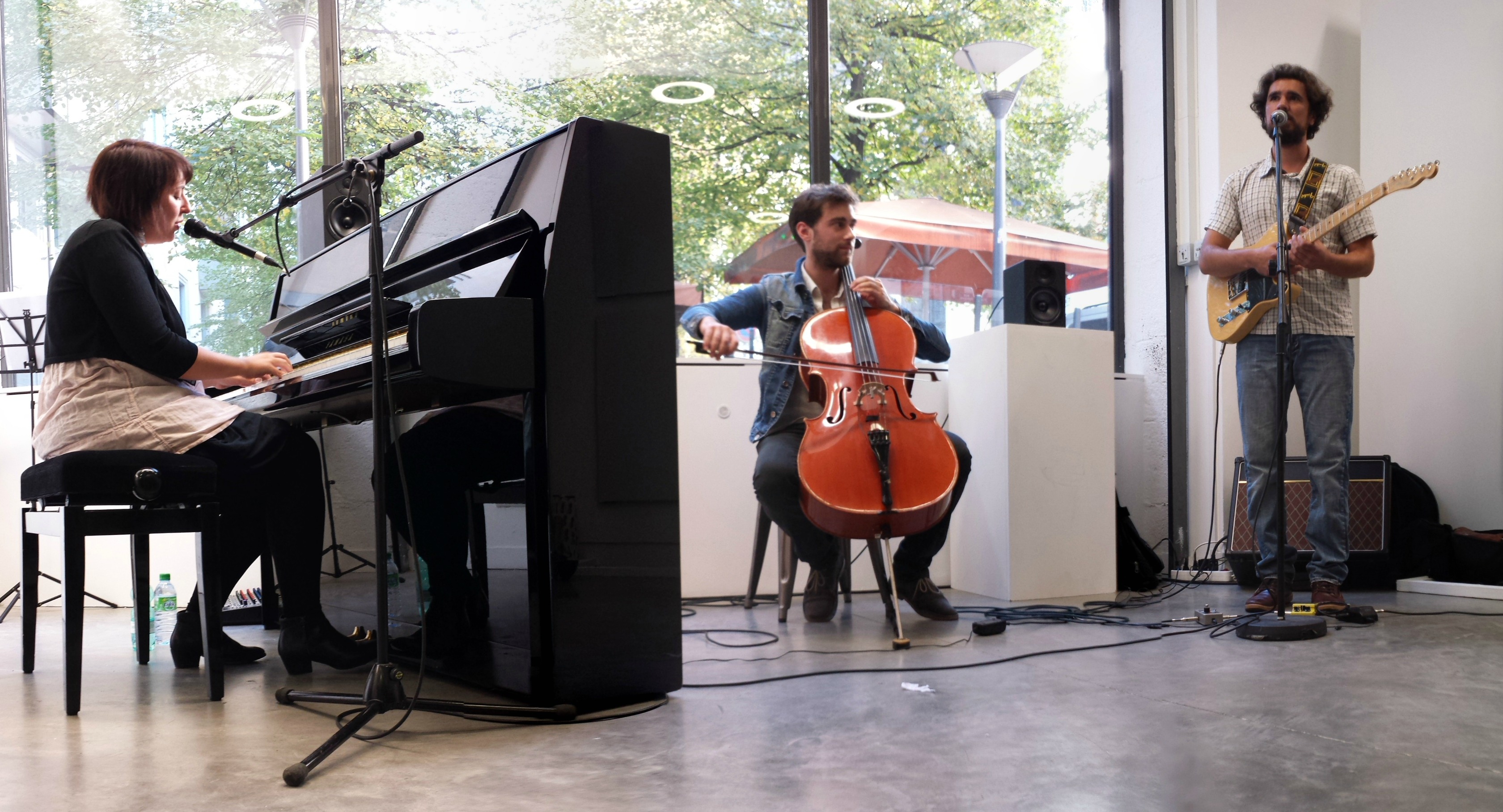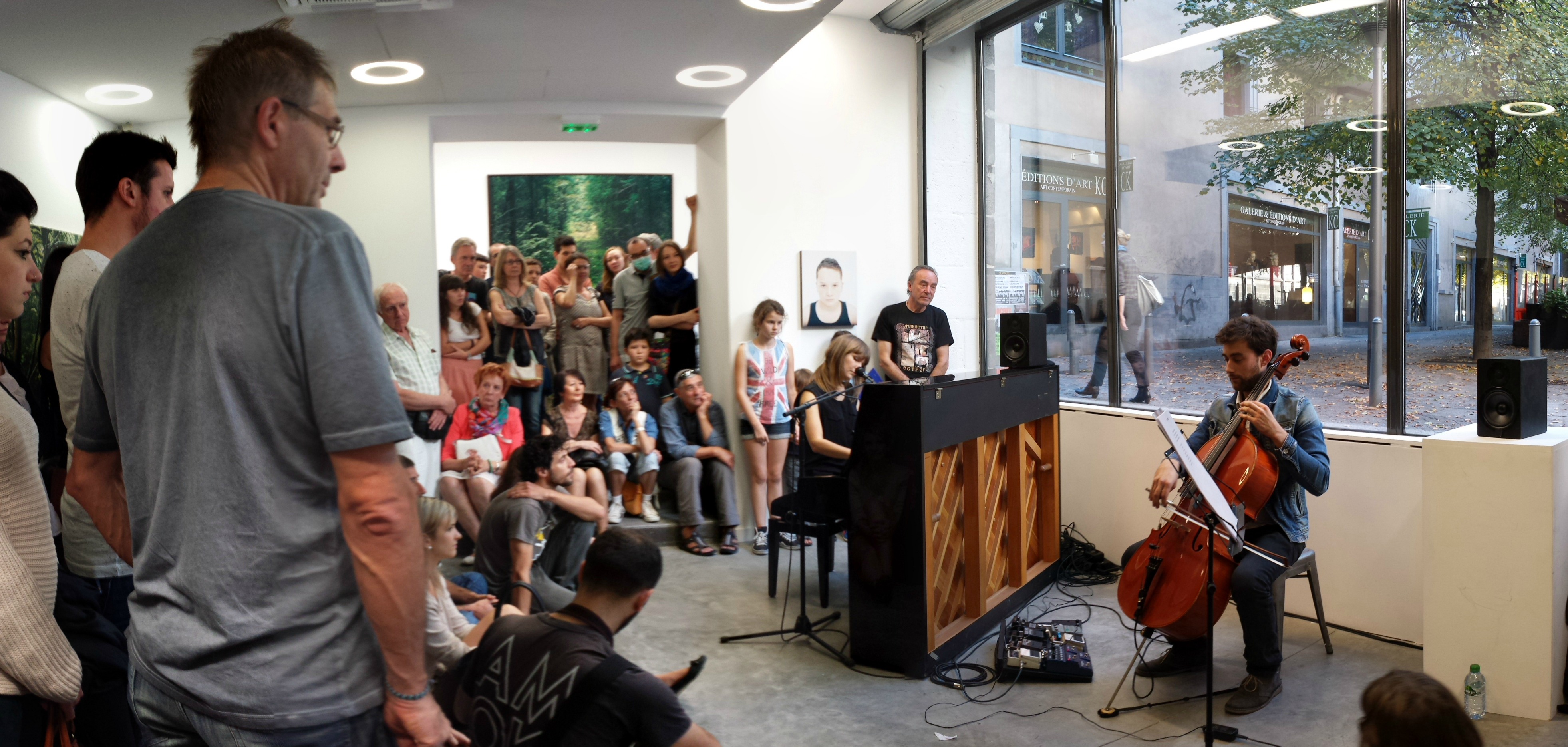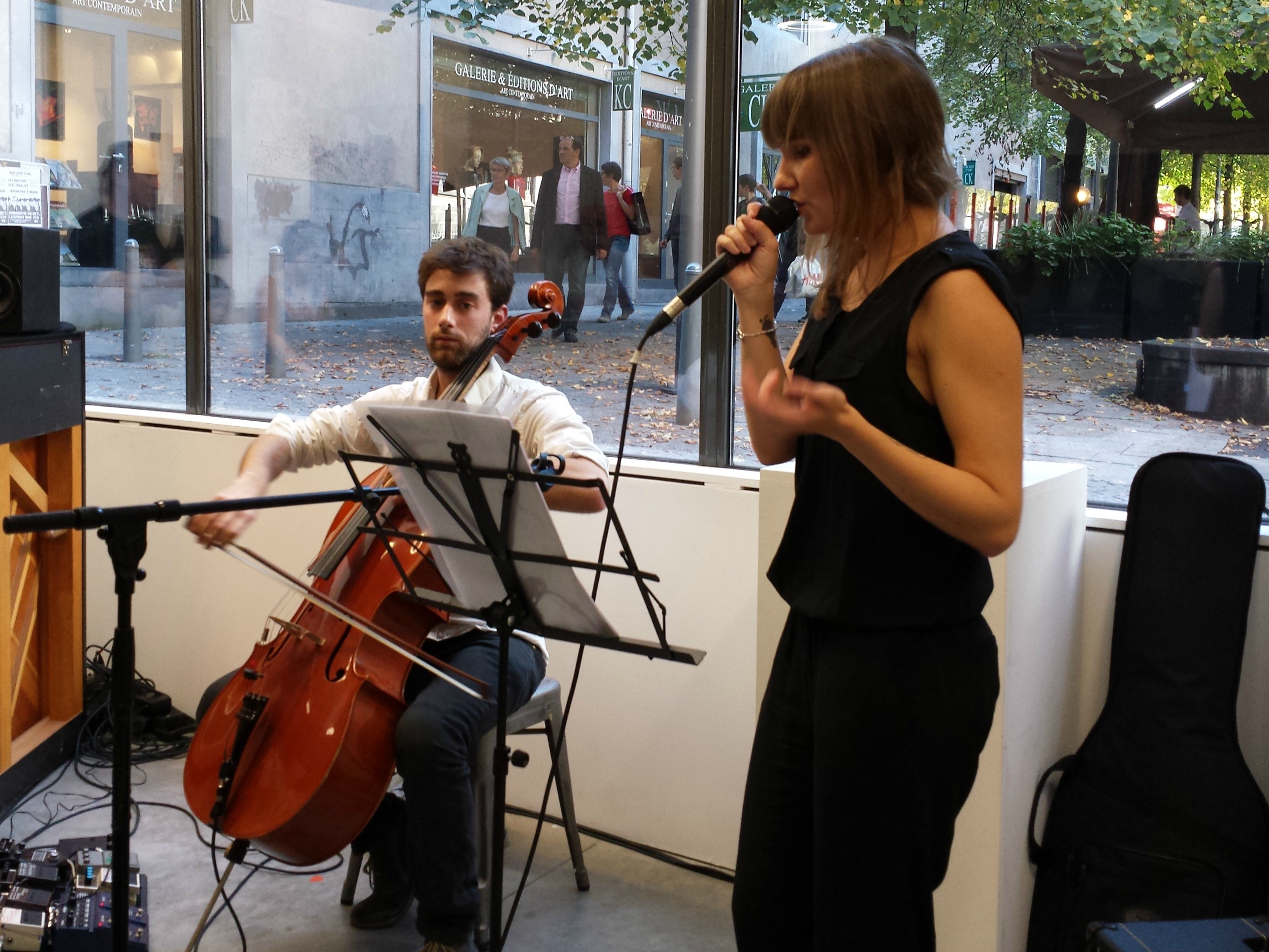 Retour au rez-de-chaussée pour retrouver Guillaume Bongiraud mais cette fois, avec une blonde (il en faut pour tous les goûts !), Morgane Imbeaud. Le set et la complicité qui unit ces deux-là m’ont rappelé d’excellents souvenirs au fin fond d’une cave humide. Hein ? Si si ! Rappelle-toi, j’avais participé au festival Underfest et le duo avait joué le jeu du concert très underground. Depuis, voix et instruments se sont affirmés, accordés, dans une série de reprises qui, bien que très réussies, donnent envie de voir cette petite formation s’épanouir dans des compositions originales. La douce voix de Morgane Imbeaud, la chaleureuse suavité du violoncelle… tout ça est très prometteur pour la suite que je leur souhaite pleine de succès.