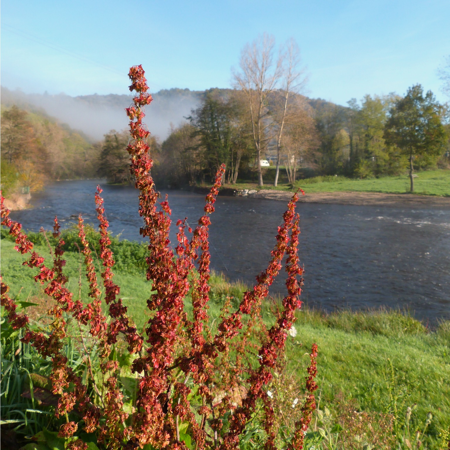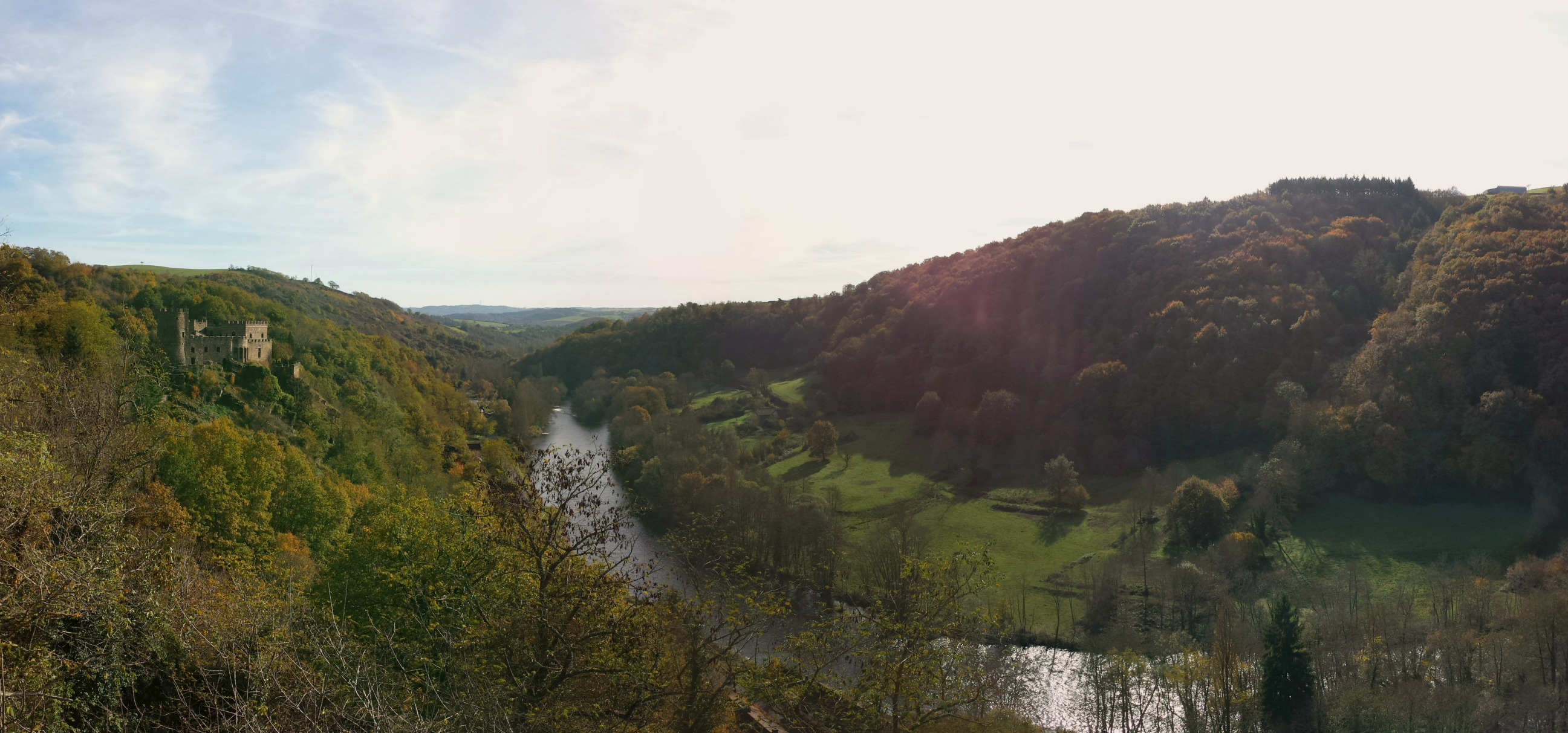 Tout au long de la balade, des jolies couleurs d’automne, un beau soleil et le clou du spectacle avec une vue plongeante sur les gorges depuis le calvaire en haut du village. Je vous fais part ici du secret confié par Sophie : la plus belle vue est au bout du cimetière ! Osez pousser la petite grille à gauche de la petite église (je ne suis pas entrée à l’intérieur) et dirigez-vous tout au bout pour avoir une vue panoramique sur les gorges et sur le château en contrebas.