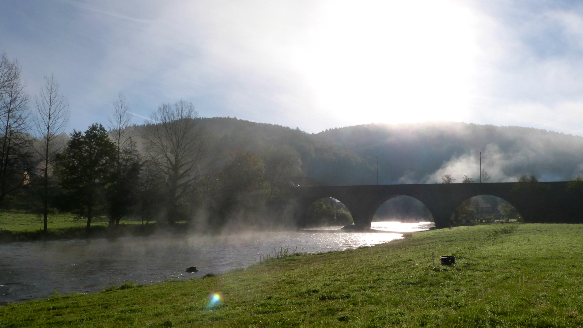 Les gorges de la Sioule sont la frontière naturelle entre le Puy-de-Dôme et l’Allier, du côté d’Ebreuil et Chouvigny. Au « petit » matin (genre 9h30 quoi ;)), des ambiances féériques se créent au-dessus des eaux et autour des ponts. Un premier arrêt au Pont-de-Menat était plus qu’obligatoire pour profiter de cette lumière brumeuse. La route tortueuse le long des gorges, cernée de hautes falaises impressionnantes, était également  un ravissement autant qu’un crève-cœur car là aussi, j’aurais bien voulu m’arrêter tous les dix mètres. Malheureusement, ce n’était pas le but de ma journée, ce sera pour une autre fois j’espère !