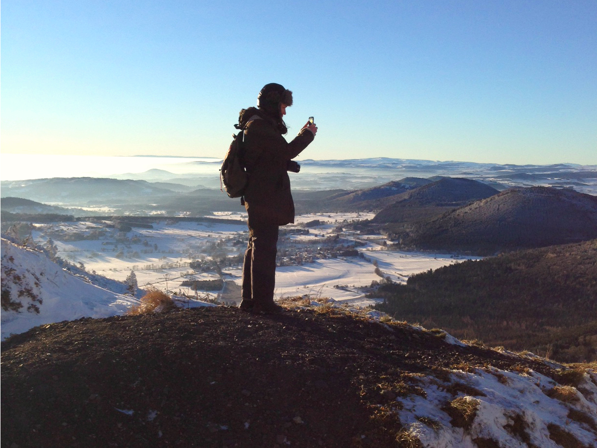 Après une nuit de digestion difficile et de peu de sommeil, réveil à 6h ! Wouhou ! Une petite demi-heure pour s’habiller, préparer un Thermos de thé, ramasser le sac à dos échoué dans l’entrée depuis la veille et prendre la voiture (la mienne cette fois, qui ne tombe généralement pas en panne) en direction du puy de Dôme. Après avoir réfléchi à l’éventualité d’un nouveau spot sunrise pour le 1er janvier, il a été décidé de conserver le puy de Dôme, comme en 2014, garantie de paysages de qualité et au parcours sans mauvaise surprise.