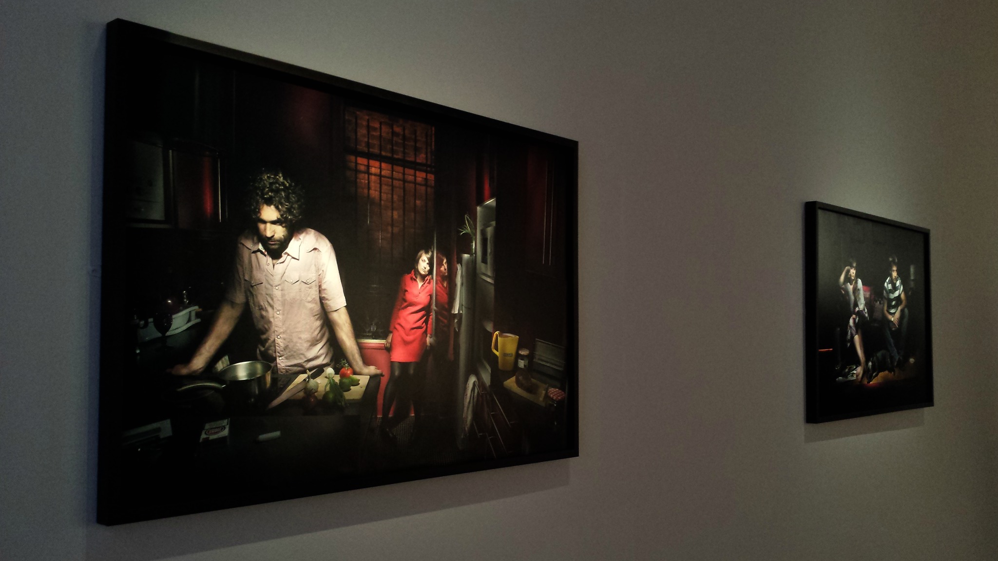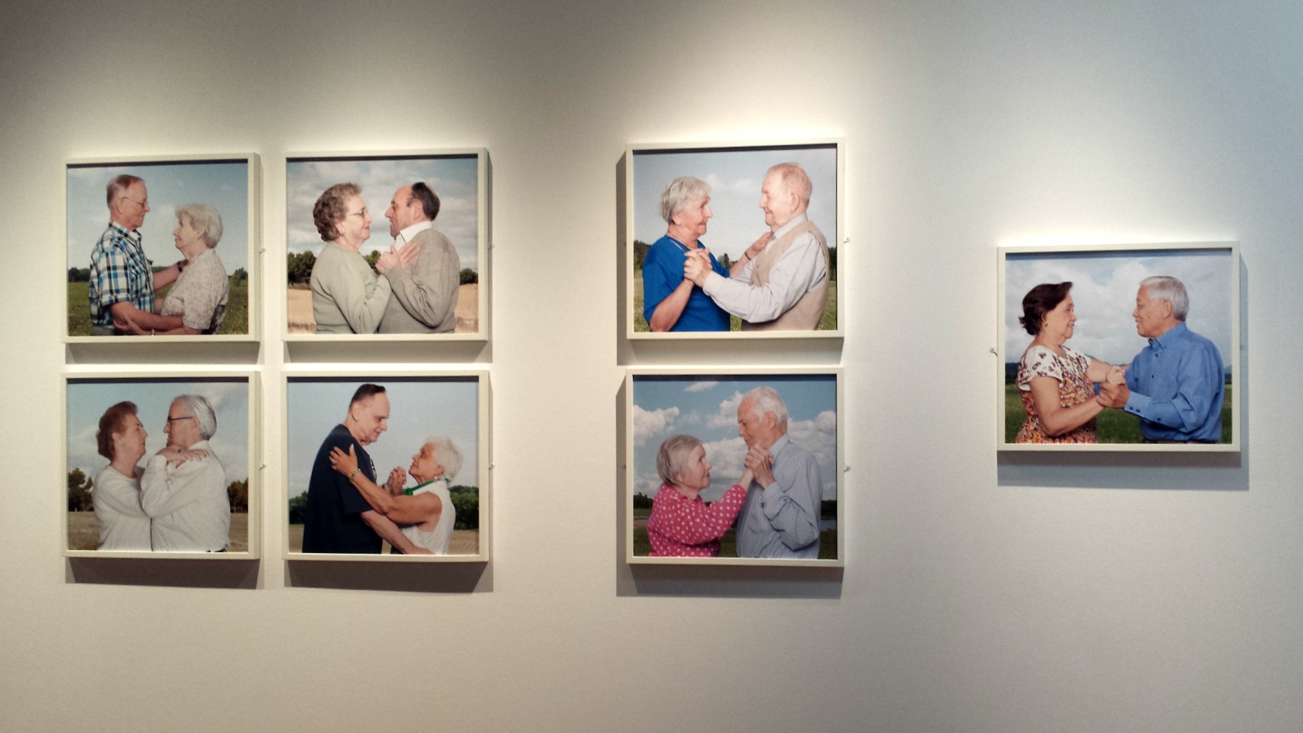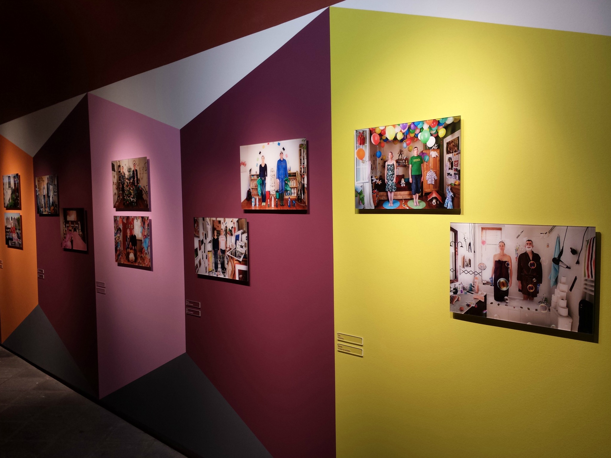 Beaucoup de séries dans les œuvres exposées, créant un ensemble harmonieux qui se fait écho entre les étages. Les jeunes célibataires russes d’Alena Zhandarova regardent les vieux couples dansants d’Ana Galan mais ceux-ci ne les regardent pas en retour. Ils se mangent des yeux, s’agrippent l’un à l’autre et leurs regards, leurs mains, nous en disent long sur ce qu’ils sont et ce qu’ils ont traversé. Dans le petit couloir à côté, c’est un peu d’intimité que le couple franco-allemand de Marielsa Niels est venu chercher. Série initialement privée, cadeau d’anniversaire de ce couple, elle nous plonge dans leur quotidien, dans leur histoire commune, leurs différences qui vont se loger dans de menus détails du quotidien mais qui peuvent avoir tant d’incidence sur la vie partagée. Marielsa, je vous en avais déjà parlé, est une jeune photographe clermontoise qui adore placer ses personnages au cœur d’un univers à la fois très réel, intime, mais également totalement foutraque. Ses mises en scène, bordéliques autant que méthodiques, sont autant d’inventaires qui démontrent que notre environnement, nos choix de consommateurs, en disent beaucoup plus sur nous qu’on ne voudrait le croire.