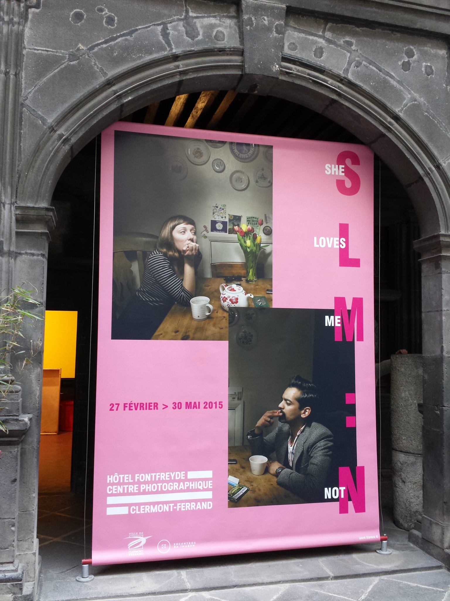 « She loves me, she loves me not » a été initialement présentée à Braga, au Portugal, à l’occasion du festival des Rencontres de l’image en 2013. Braga est jumelée à Clermont depuis 1999 et cette union est l’occasion d’échanger, y compris des expos. Les photos exposées ne sont pas spécialement l’oeuvre d’artistes portugais, bien au contraire (il n’y en a qu’un), et ont pour thème principal… l’amour. Sous toutes ses formes. Jeunes filles célibataires, vieux couples dansants, femmes divorcées, mères violées… chacun des artistes s’est attaché à nous livrer une vision personnelle, au coeur de l’intime, mais également terriblement universelle de ce qu’est l’amour.