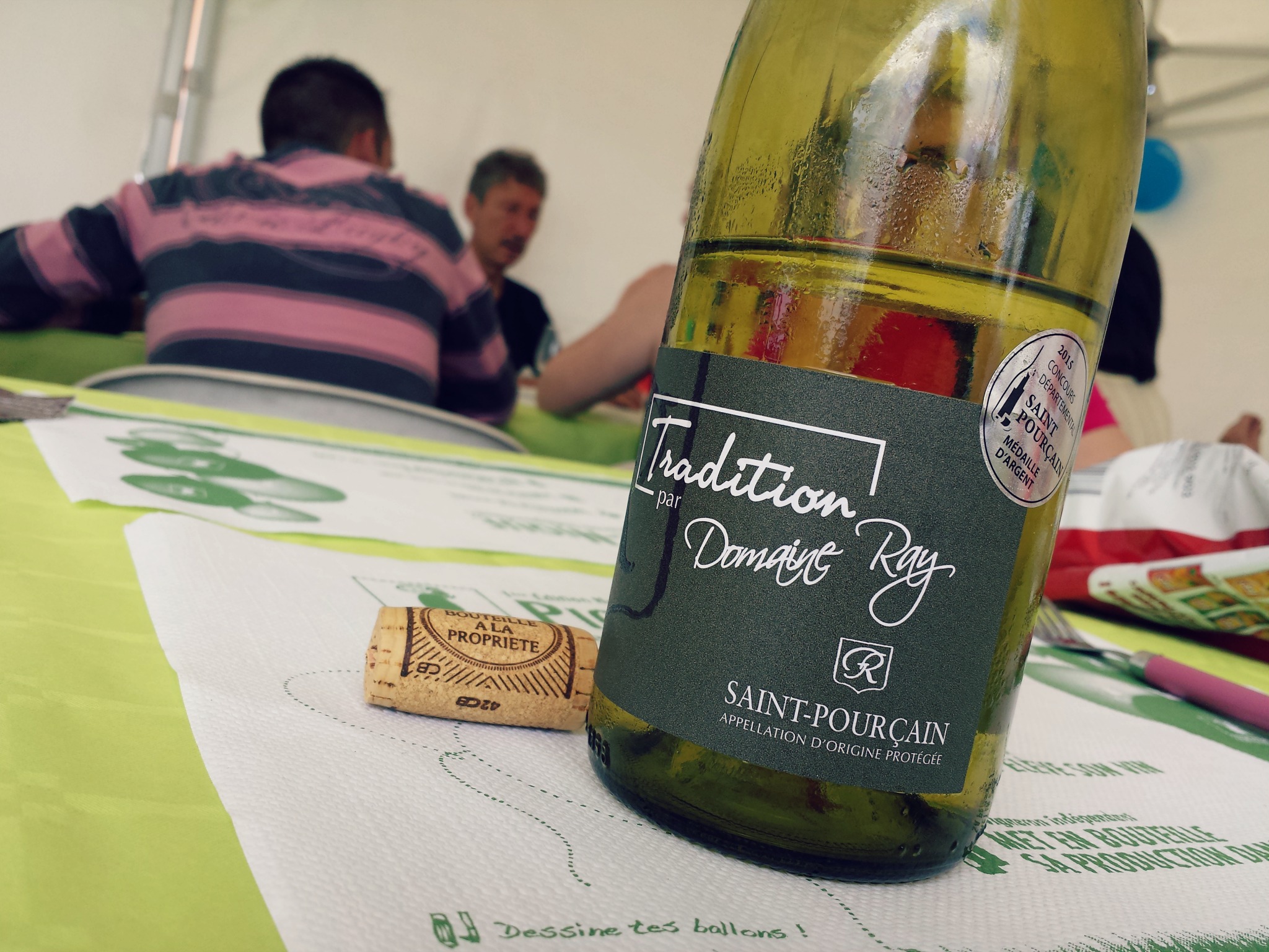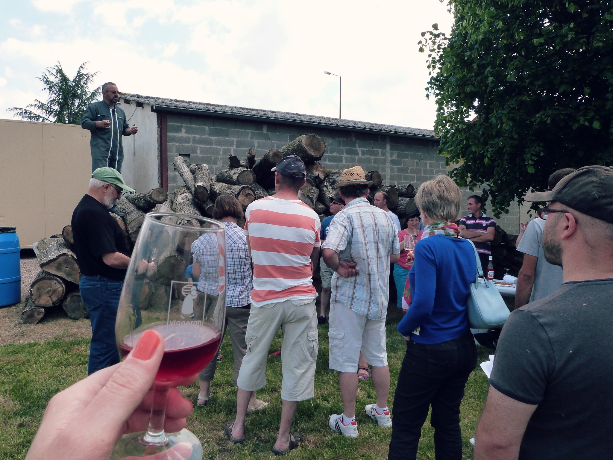 C’est donc au Domaine Ray à Saulcet que nous nous sommes rendus après la fameuse balade laborieuse de la réserve naturelle du Val d’Allier. Autant dire qu’arriver là-bas, se faire accueillir avec le sourire bien large, l’apéro bien frais et les pelouses bien tondues a eu une saveur particulière après les émotions du matin. Chez les Ray, le vin est une longue histoire de famille. Aujourd’hui ce sont François et Guylaine, épaulés par leur fille Fanny et leur gendre Alexandre qui mènent la petite affaire familiale. Être vigneron indépendant, c’est avoir tout à faire, jusqu’à la commercialisation et pour ça, il faut se démener pour faire sa place sur un marché bien encombré. Se faire connaître, faire goûter… et pourquoi pas inviter des gens à partager un pique-nique et à découvrir l’exploitation ?