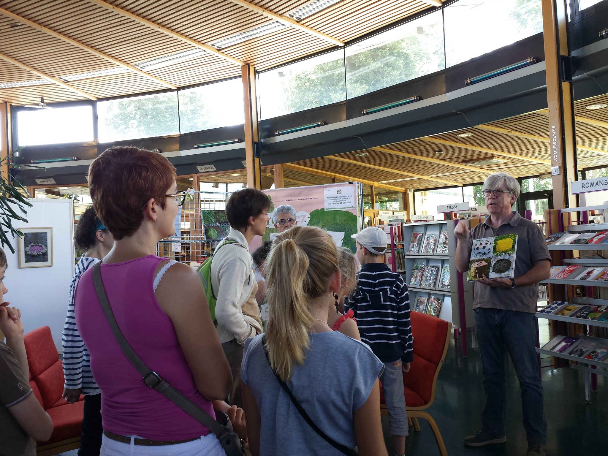Le lendemain matin, direction Cournon-d’Auvergne, à la médiathèque Hugo-Pratt. Je ne m’étais pas inscrite à l’avance mais c’est sous les encouragements de Val et du personnel de la médiathèque d’Aulnat que je m’y suis présentée malgré tout (et malgré une dent de sagesse en moins depuis la veille, aouch !). Rebelote la présentation de son travail avant d’aller investir les jardins de la médiathèque !