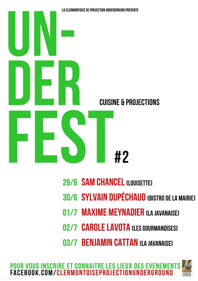 La Clermontoise de Projection Underground a convié cinq chefs clermontois à cuisiner dans des conditions inhabituelles. Oh il n’est pas question ici de prouesses techniques à la Top Chef, juste de proposer à une vingtaine de participants par soirée une petite dégustation insolite, cuisinée (ou juste réchauffée) sur deux plaques électriques par un chef sympa qui porte haut la frontale sur sa tête ainsi que l’envie de bien manger. Je tiens à remercier les cinq chefs (même si j’ai séché la soirée du mercredi) pour leur générosité car il est à signaler que les vingt assiettes étaient gracieusement offertes. Inutile de dire que j’ai déjà prévu quelques petites soirées resto dans les établissements concernés, histoire de renvoyer l’ascenseur comme il se doit.