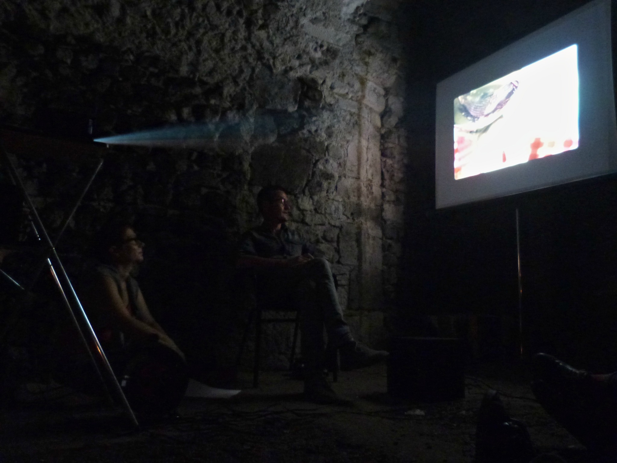 Après cette dégustation, les convives sont invités à passer « au salon ». Une deuxième pièce de la cave est équipée de l’écran et du rétroprojecteur destinés à diffuser une petite sélection de courts-métrages élaborée par La Jetée elle-même ! Gardienne du temple des archives du festival du court-métrage ! La commande ? Que des films en rapport avec la nourriture. Les réalisateurs ont tous eu la gentillesse de donner leur autorisation pour la diffusion. Je retiendrai « Tous à table » d’Ursula Meier, histoire d’un dîner d’anniversaire qui dégénère à cause d’une devinette lancée par un convive. Vous pouvez le visionner sur cette page !