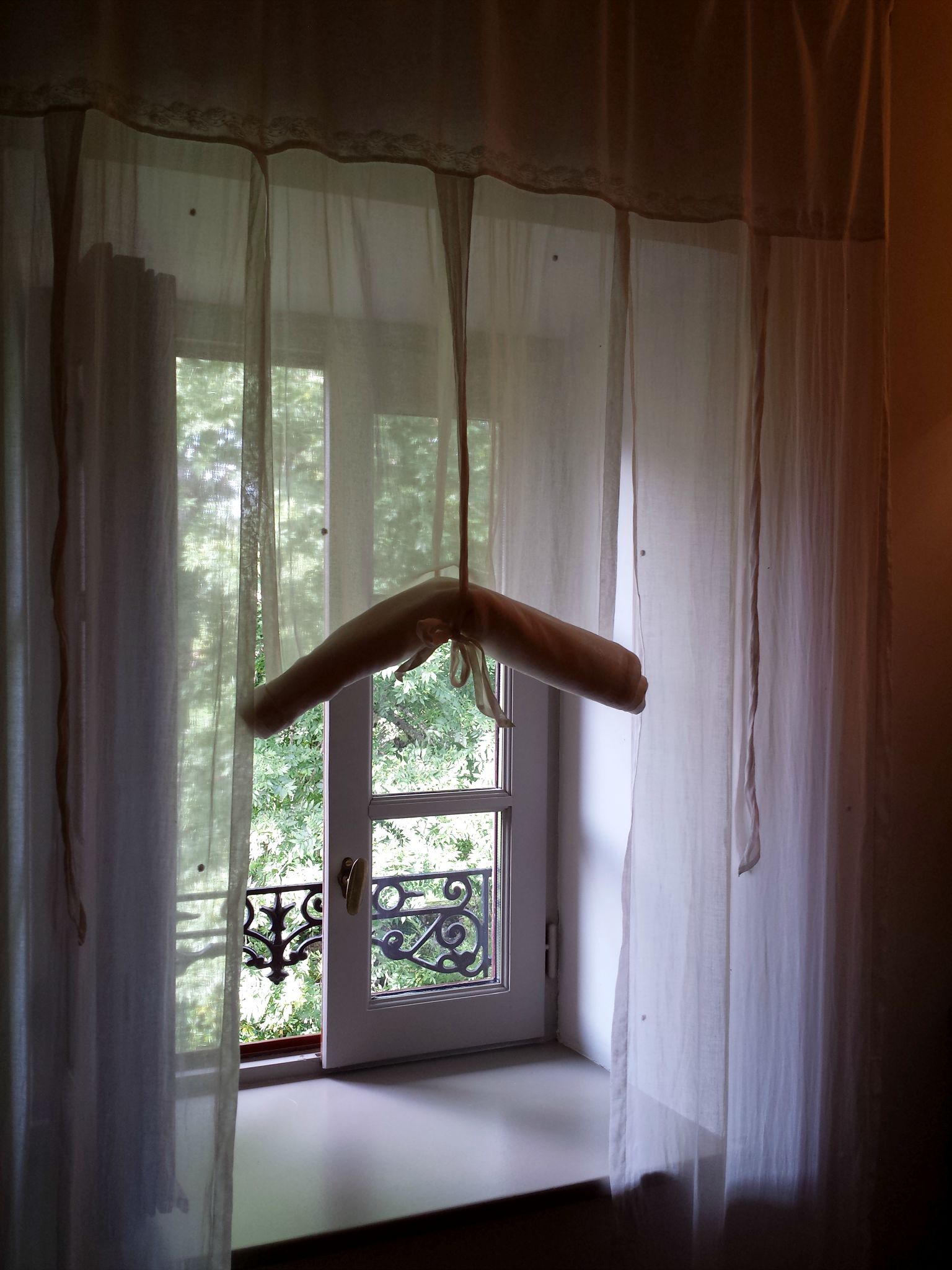 Direction Nedde ! Par les petites routes de campagne, une vingtaine de minutes nous ont suffi pour rallier la place de l’église, pile devant l’hôtel. L’une des propriétaires m’avait appelée dans l’après-midi pour me confier le code de la porte d’entrée au cas où elle ne soit pas là pour nous accueillir, nous avons donc découvert notre chambre, au deuxième étage d’une vieille bâtisse de pierre : décoration vintage de très bon goût, couleurs apaisantes, petites lucarnes dans le mur et vue sur le jardin, ses transats et ses arbres protecteurs.