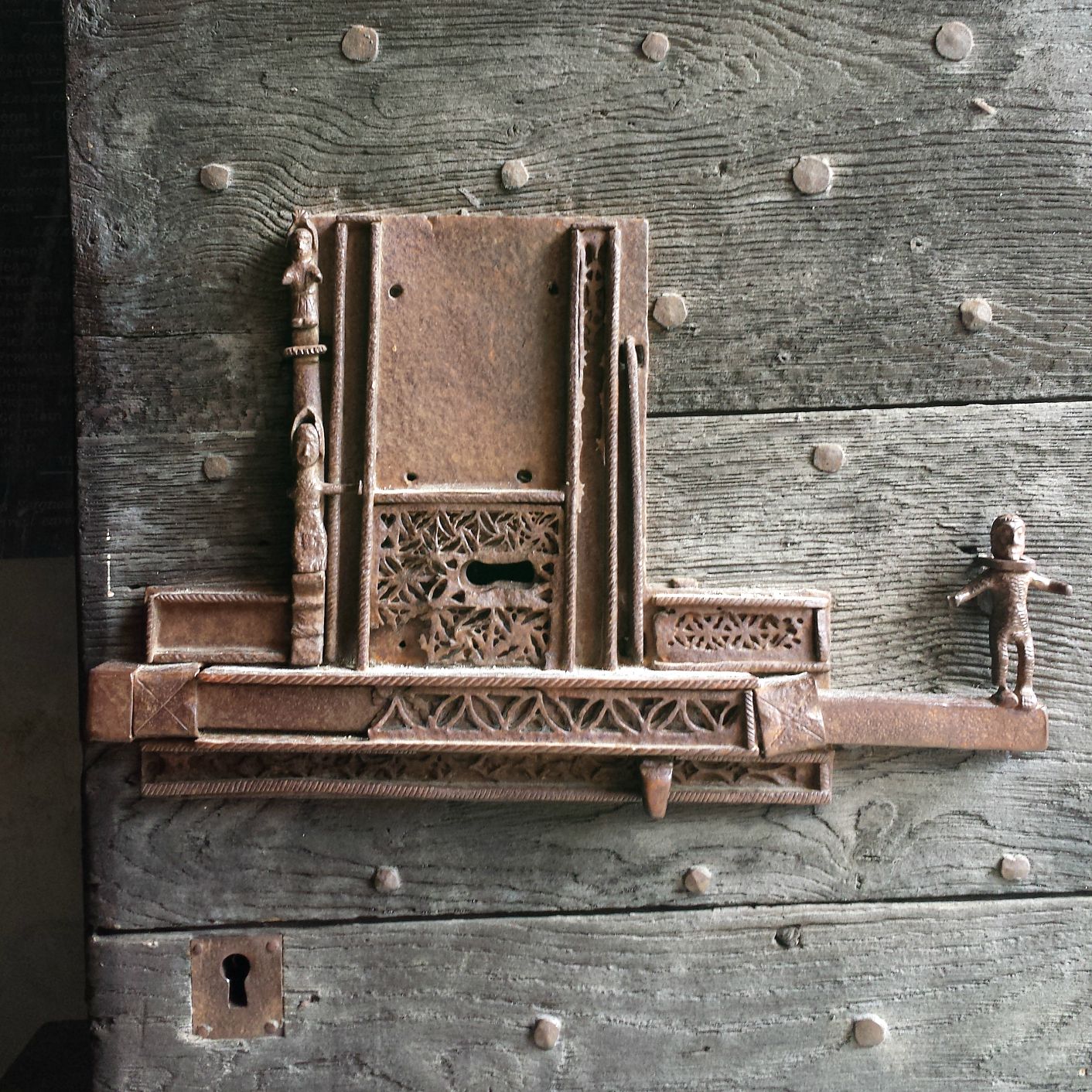 Oh et au fait ! Pourquoi « le verrou » ? Pourquoi ce nom évoquant un sinistre donjon pour un si joli hôtel ? Pour comprendre il faut traverser la rue et rejoindre l’église Saint-Martin. Sur sa lourde porte se trouve un énorme… verrou. Datant du XVe siècle, il est effectivement impressionnant et intéressant à détailler (d’ailleurs j’ai pensé que Val aurait adoré le dessiner dans ses petits carnets !).
