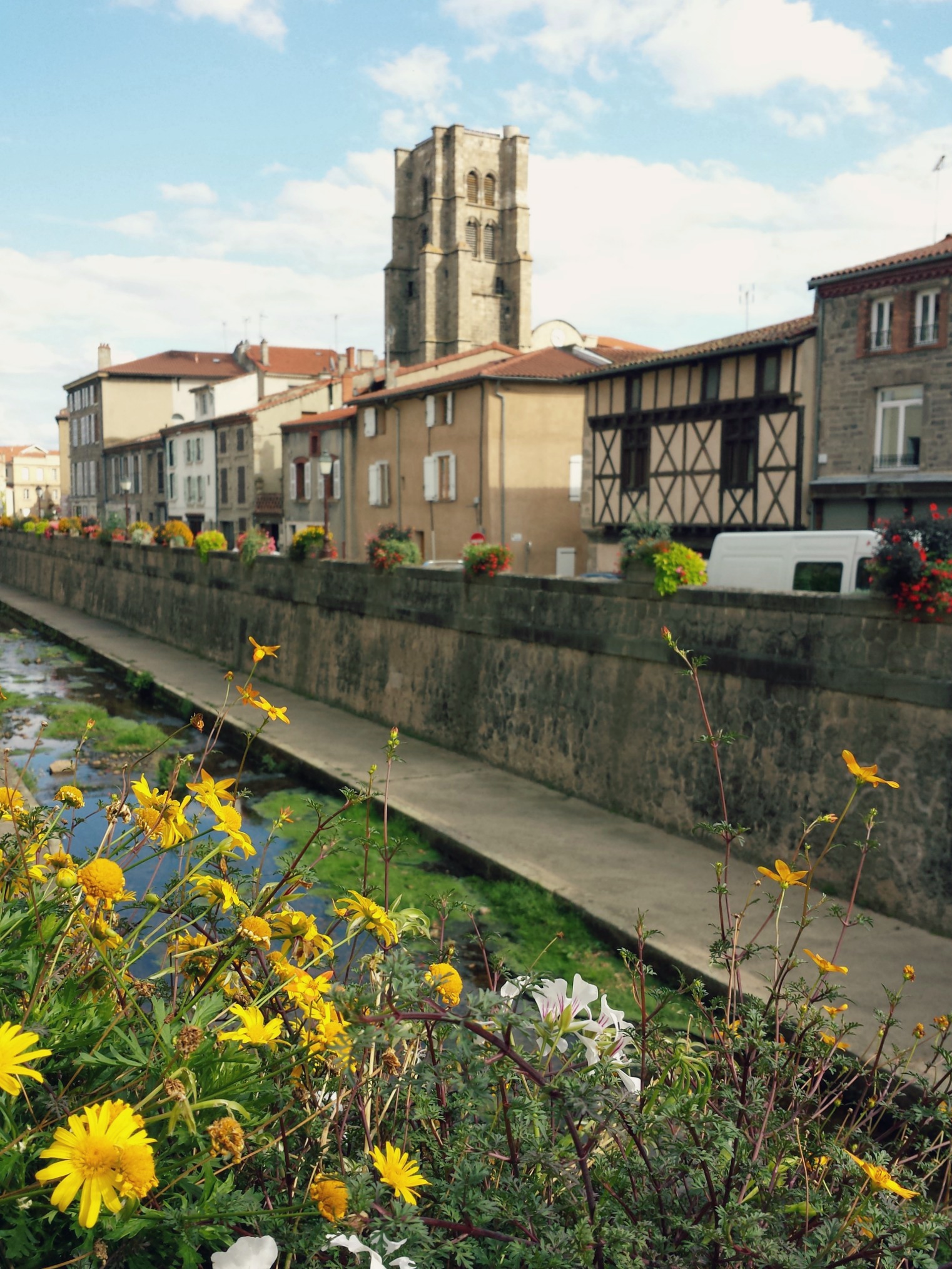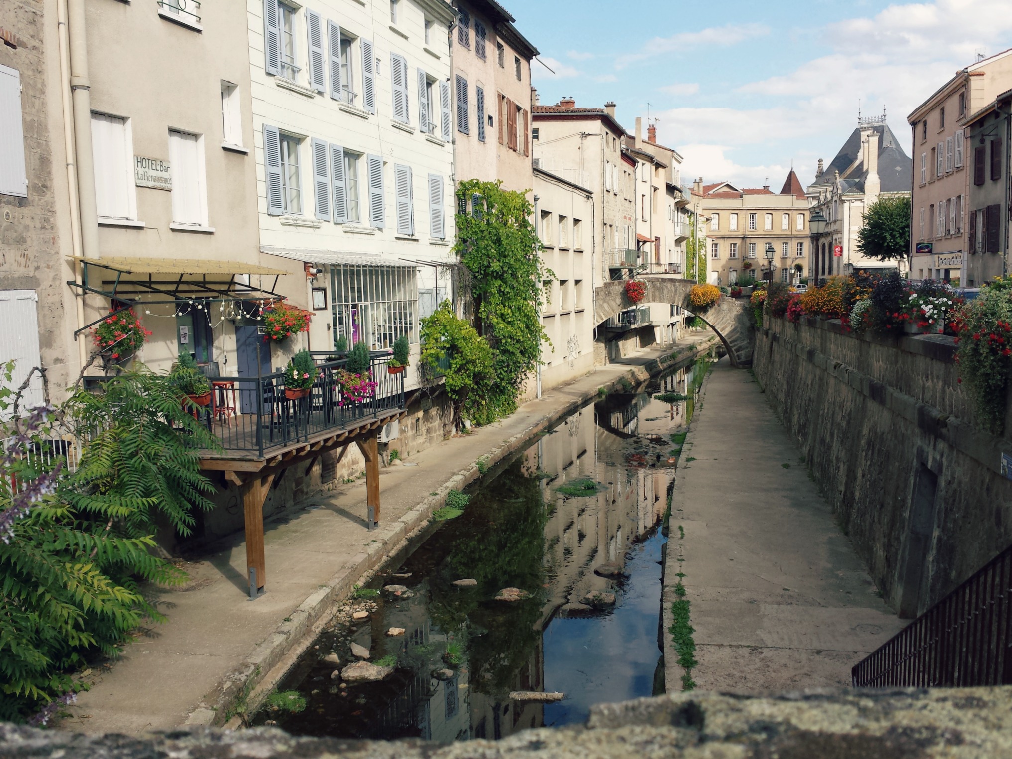 Avant de nous rendre à cet apéro, nous avons eu le temps (sur les bons conseils de la charmante jeune femme à l’accueil de l’OT), de divaguer un peu dans Montbrison. Longer le Vizézy, découvrir la collégiale Notre-Dame, la salle héraldique de la Diana (de l’extérieur seulement), monter au calvaire pour découvrir la vue imprenable sur le Forez environnant (Foré, donc), puis finir au Jardin d’Allard en attendant l’apéro… Une petite balade sympathique pour découvrir une jolie ville au patrimoine riche et aux rues commerçantes agréables et animées. J’ai embarqué quelques documents touristiques entre deux tranches de fourme de Montbrison et deux verres de La Madone (un vin volcanique local), les jolies balades et les gourmandises de terroir ont titillé ma curiosité ! Je reviendrai !
